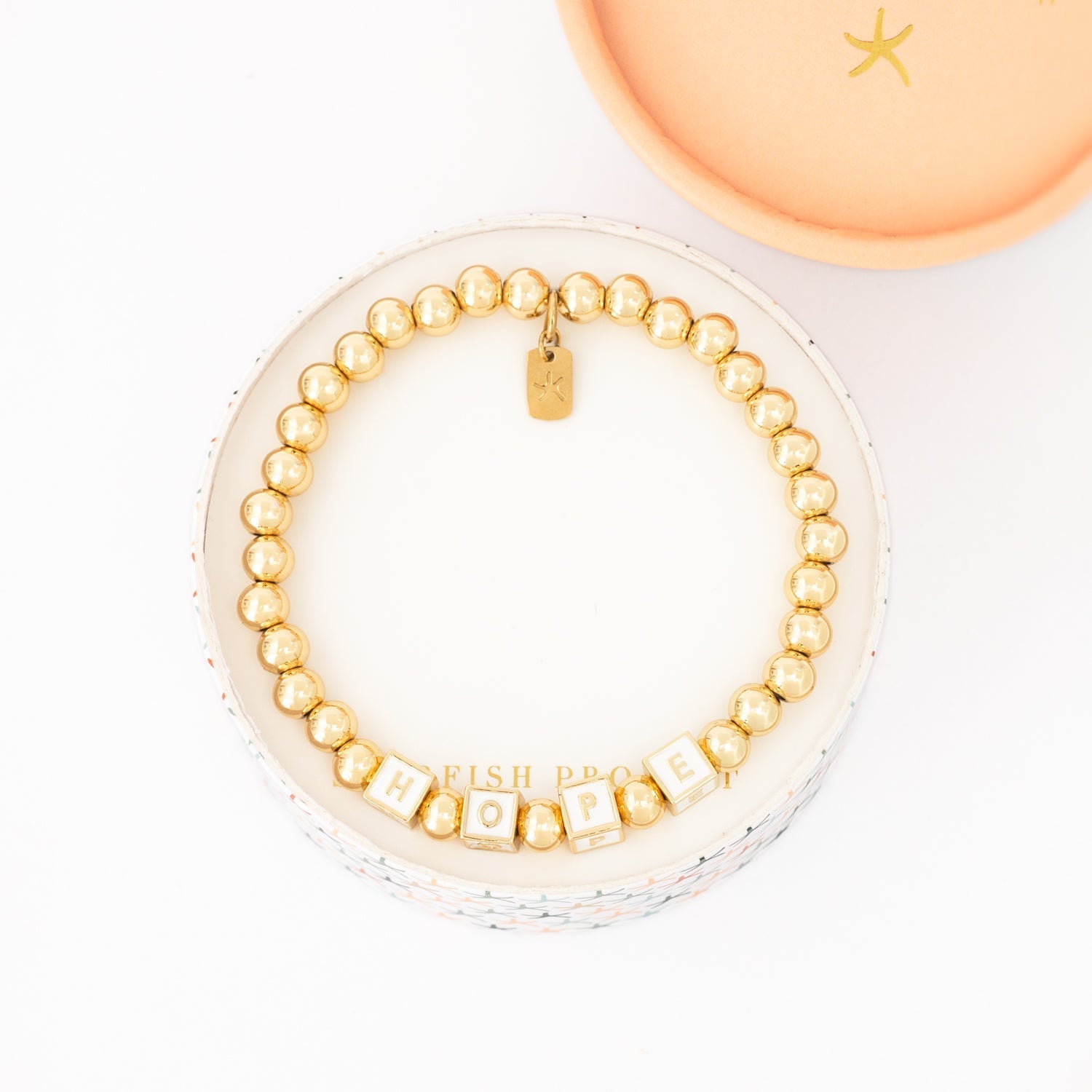 Your classic best friend bracelets just got a luxurious and life-changing upgrade! "Give Hope, Wear Hope" with our stunning 14K gold-plated ball bracelet, featuring gold disc beads that spell “Hope.” Whether you add this handmade statement piece to your stack or wear it solo, you’re helping survivors find freedom and build life-transforming careers. And don’t forget to share this updated classic with all your friends— It makes the perfect gift! Materials: 18k gold plated brass beads with enamel bracelet Hypoallergenic; lead and cadmium free with nickel content less than 100 ppm. Size: 8 inches