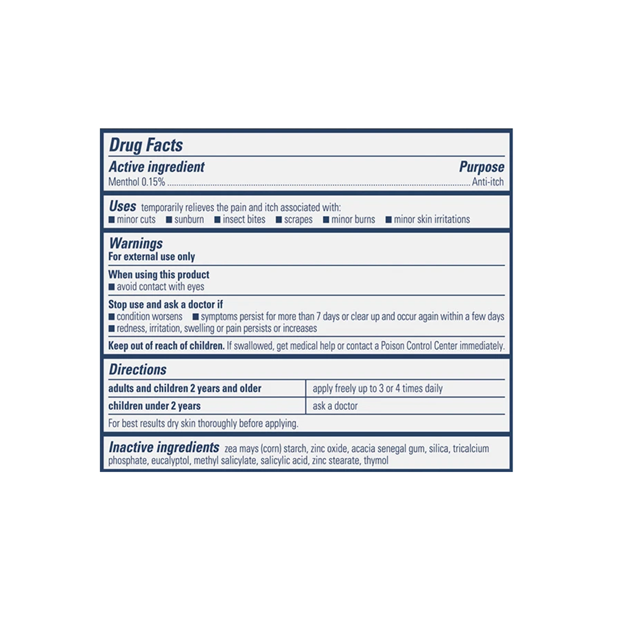 Skin that's sweaty and itchy calls for dependable cooling relief. Gold Bond Medicated Talc-Free Body Powder features a unique triple action formula that absorbs moisture, controls odor* and is formulated with 0.15% menthol to relieve itch. This original-strength body powder provides cooling relief and is ideal for itch associated with minor skin irritations, including sunburn, insect bites, scrapes, and minor cuts and burns. Best of all, this Gold Bond Medicated Body Powder is gentle enough to use daily when used as directed. Now talc-free and formulated without parabens and preservatives. *Absorbs odor-causing sweat.