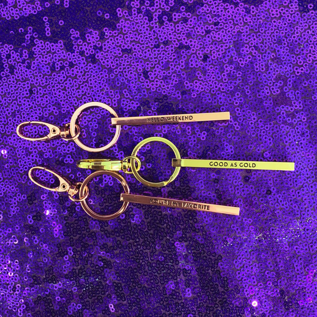 Jewelry-inspired minimalist bar keytag. Petite and sleek, this keychain adds glam without weighing down your keys!