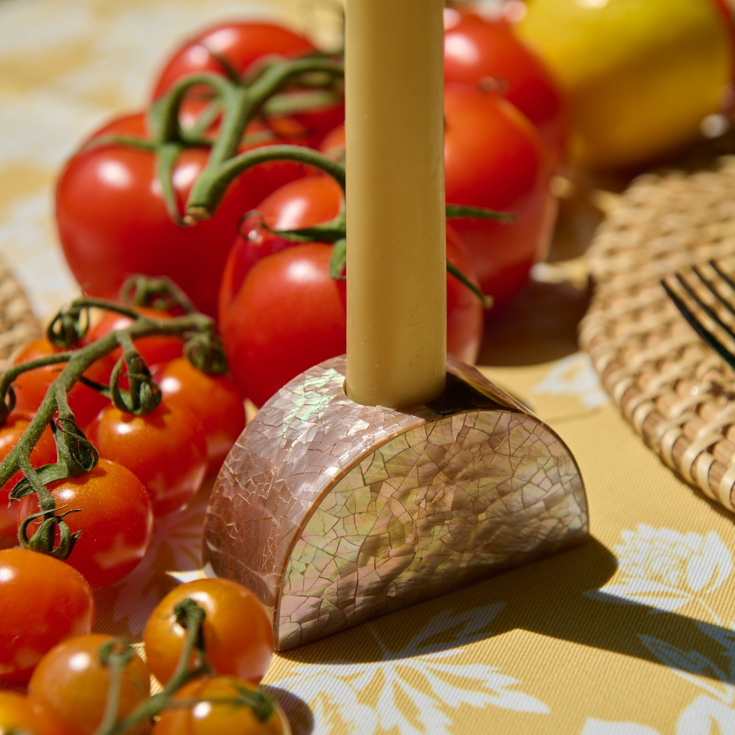 Half Moon Mother Of Pearl Candle Holders Seafoam, Set of 2