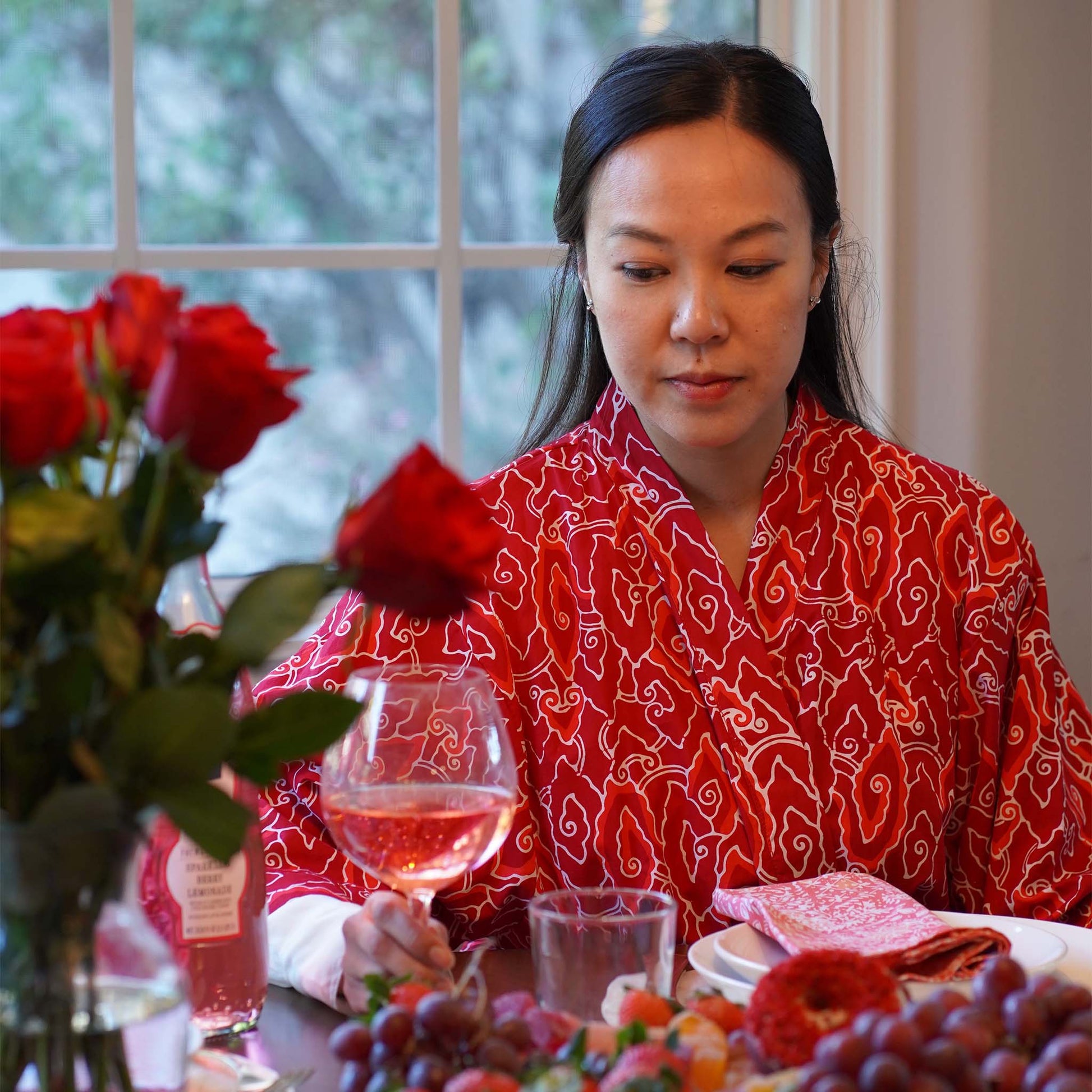 • This batik kimono robe is designed in Manhattan Beach, CA and handmade by artisans in Java, Indonesia.