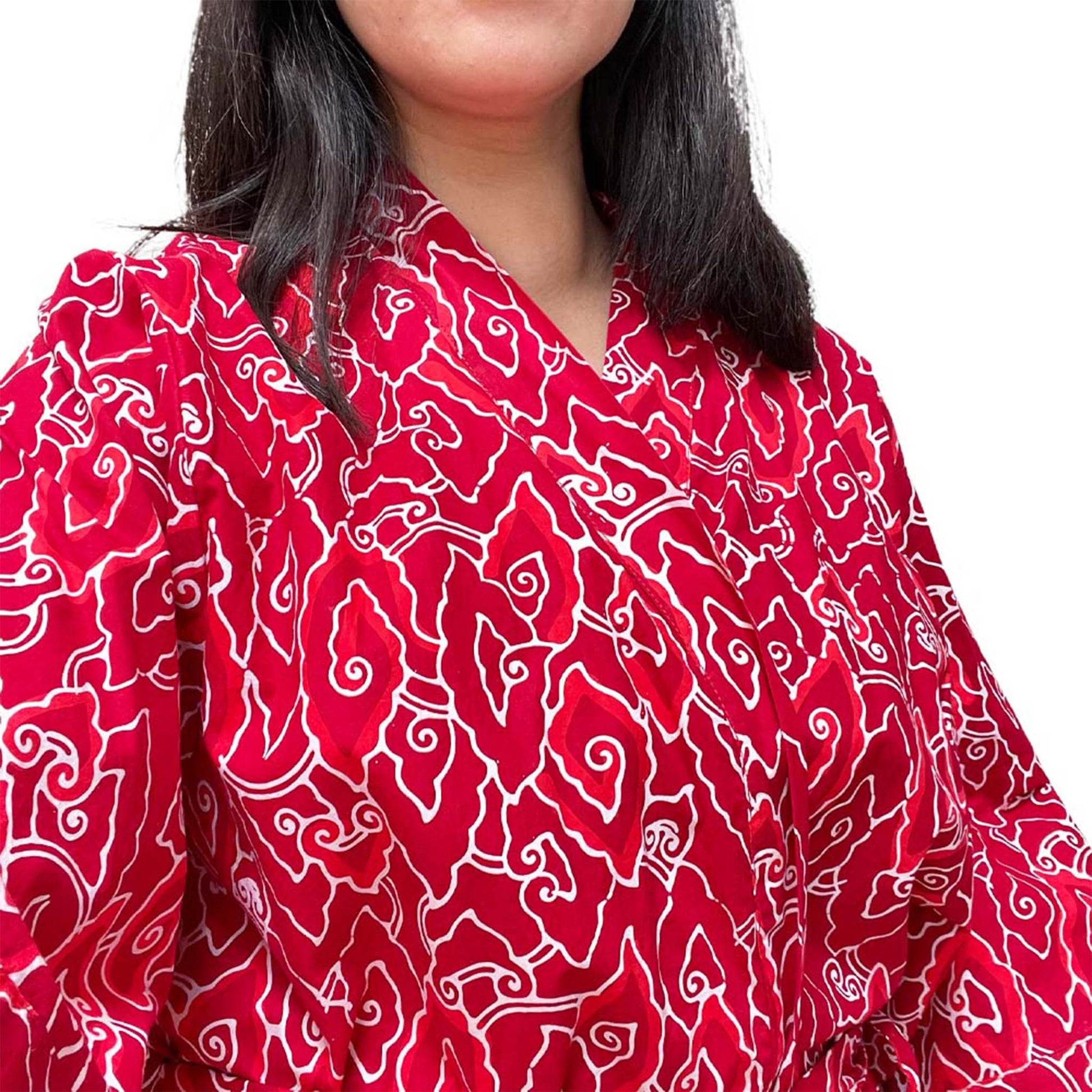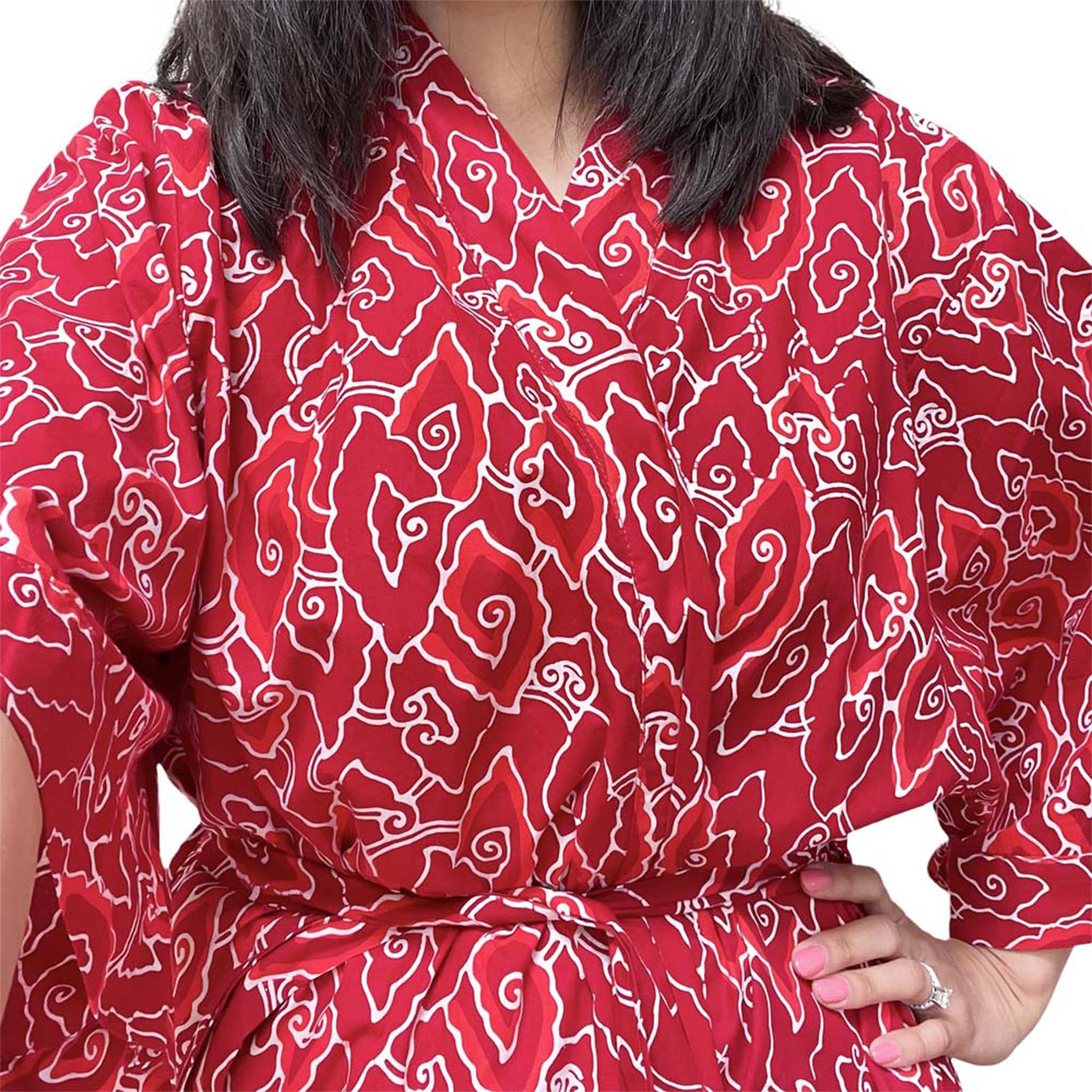 Hand Dyed Batik Robe Kimono, 100% Cotton, Red Storm, Burgundy