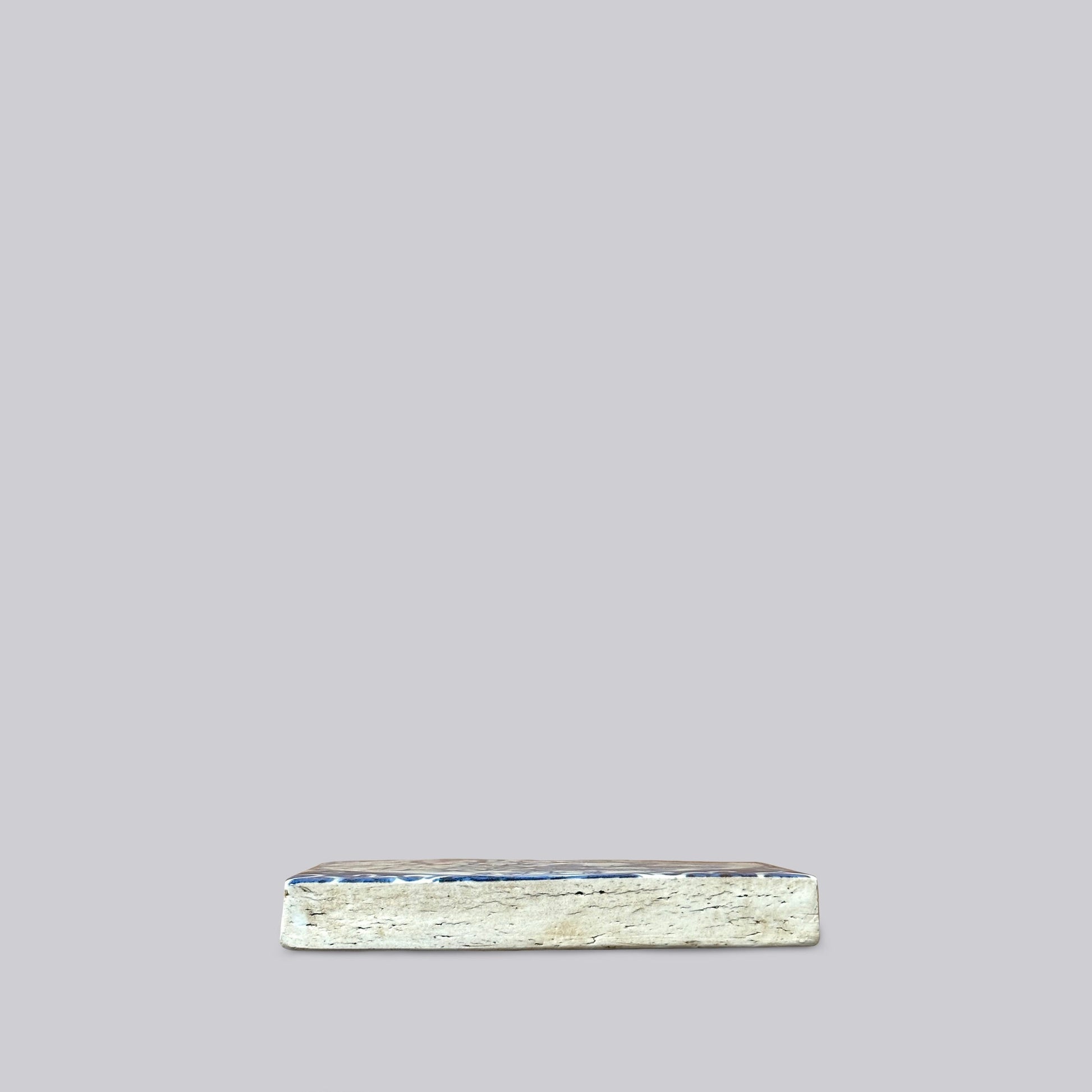 Cobalt Guild offers an assortment of blue and white porcelain vessels from the antiques markets of Jingdezhen, a town long distinguished by imperial patronage. This piece is a handmade, hand painted decorative porcelain tile in a traditional design depicting the "three friends" bamboo, pine, and plum, 8" x 8"