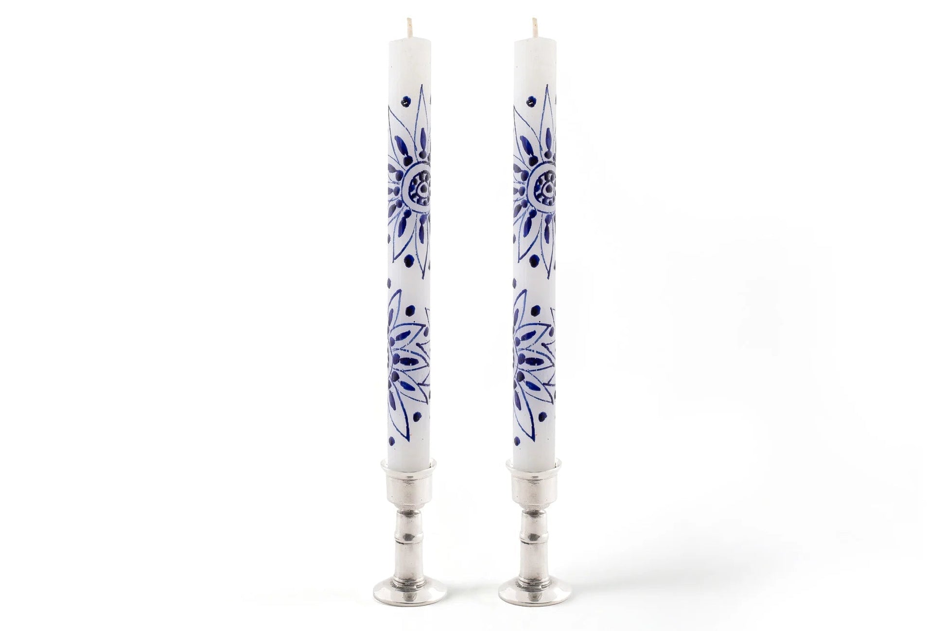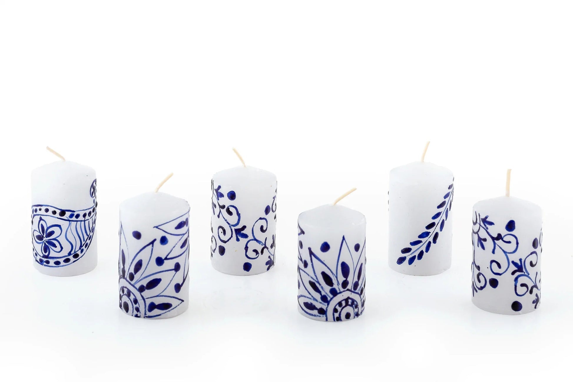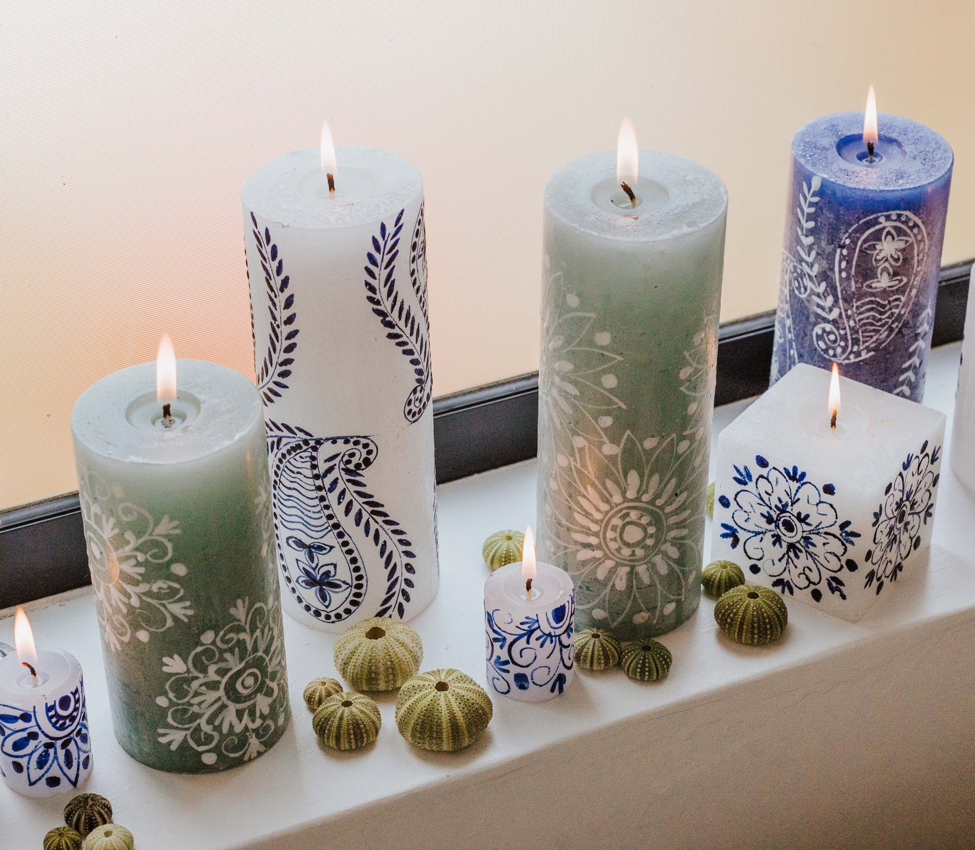 Lace up your table with these Henna Blue on White candles! *Lovingly hand poured and hand painted in South Africa. *Crafted primarily by single mothers from the local rural community. *On average, the artisans support an extended family of 12-15 people. PRODUCT DESCRIPTION: *Highest quality natural paraffin wax with 100% cotton wick *Unscented, smokeless, and free from added toxins *Tapers packaged as a matched pair *Each candle is uniquely made. Your delivered candle will likely appear slightly different from the website photo, but consistent with the theme of the collection. CANDLE CARE: *First burn time: 1-hour for every inch diameter *Wicks should always be cut to ¼” prior to lighting *Avoid drafts – they cause dripping! *Ensure candles are extinguished prior to leaving the room Learn more about the hands that make this Fair Trade product!