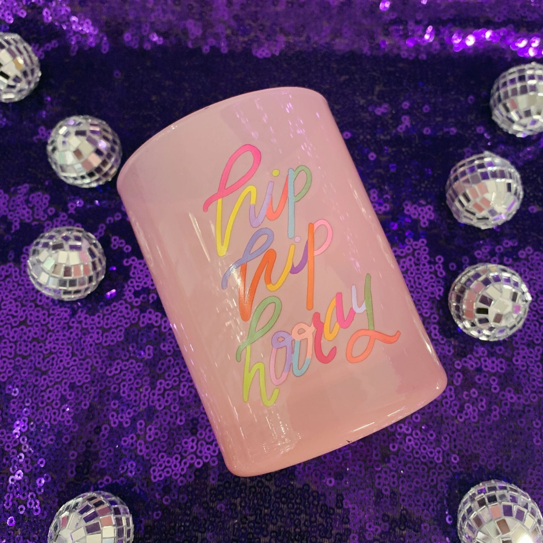 • Reads: Hip Hip Hooray in fun multicolored lettering