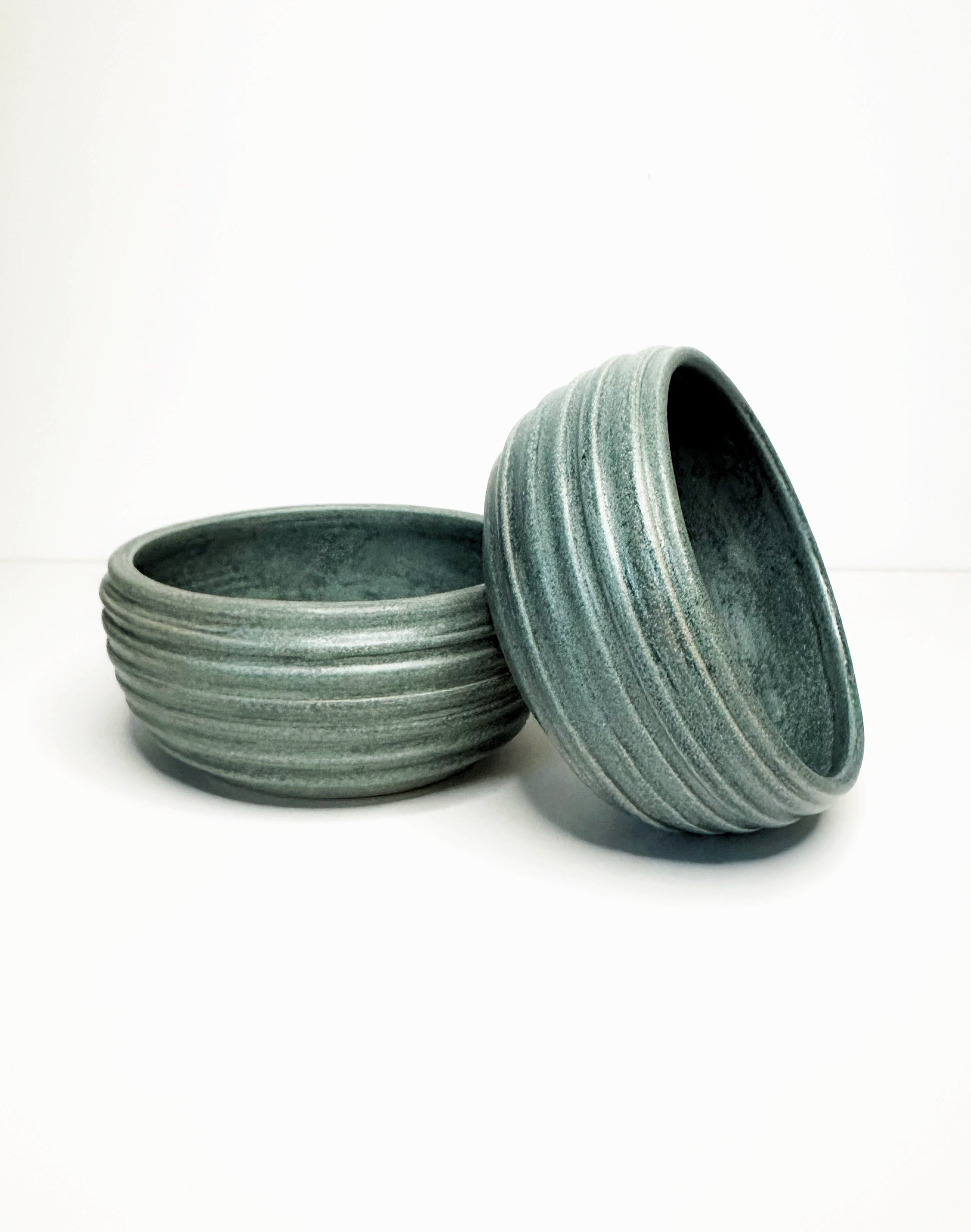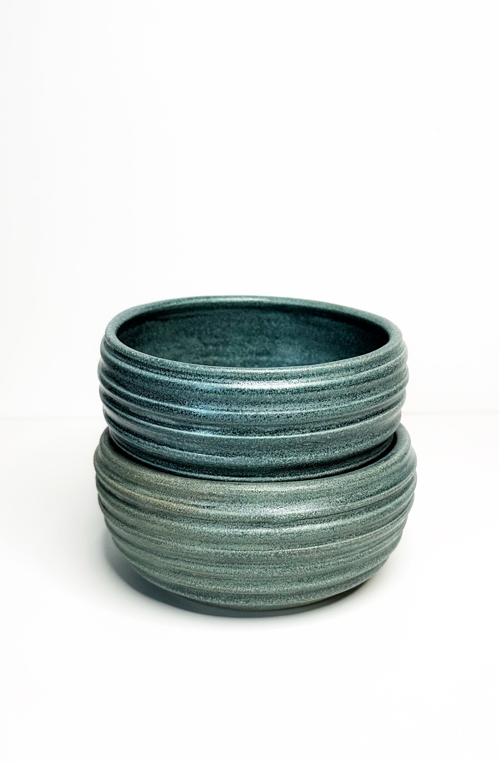 Each set includes two handcrafted bowls in varying sizes, with diameters ranging from 3.5" to 5.5". Due to the artisanal nature of these pieces, slight variations in height and size are to be expected, a charm of handmade craftsmanship. These versatile bowls are perfect for various uses, from enjoying cereal and matcha to serving berries or noodles. Mix and match with our "Lids & Trays" collection to create your unique combinations. CLAY: BB Mix + Sand GLAZE: Semi-Matte, Forest Green color. Handcrafted from USA-sourced clay. Unique, mold-free, small-batch production. Glazed finish (not microwave-safe). We recommend handwashing to prevent surface decay and scratches. Please note that slight variations in size may occur due to the clay's natural behavior during the drying and firing process.