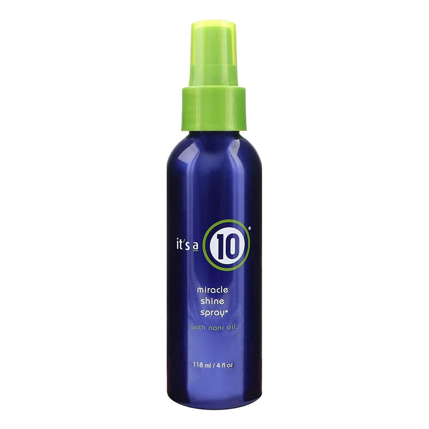 Adding the finishing touch to any type of hair, the It’s a 10 Miracle Shine Spray is the simple and effective way to impart lustrous, healthy shine. Designed to be equally effective on wet or dry hair, our Miracle Shine Spray uses powerful natural ingredients to help smooth curly and straight styles while also healing the hair shaft to bring out hair’s own healthy shine. Use as an after-styling finishing spray on dry hair or as a protectant against heat styling on wet hair.