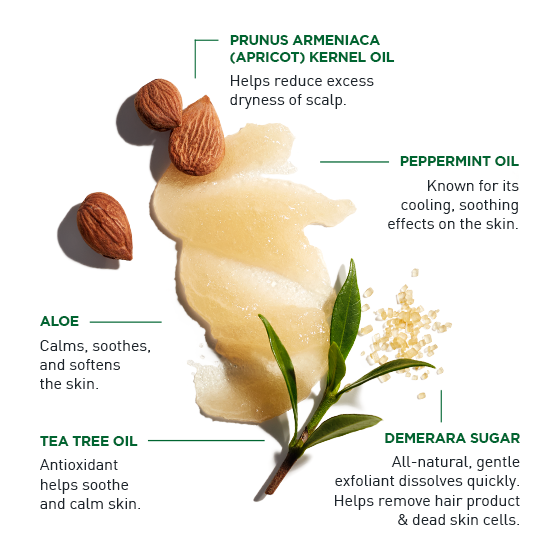 Sucrose, Aqua/Water/Eau, Glyceryl Caprylate/Caprate, Prunus Armeniaca (Apricot) Kernel Oil, Sodium Methyl Cocoyl Taurate, Glycerin, Glyceryl Caprylate, Butyrospermum Parkii (Shea) Butter*, Adansonia Digitata Oil*, Melaleuca Alternifolia (Tea Tree) Leaf Oil, Mentha Piperita (Peppermint) Oil, Bisabolol, Epilobium Angustifolium Flower/Leaf/Stem Extract, Aloe Barbadensis Leaf Juice Powder*, Potassium Sorbate, Guar Hydroxypropyltrimonium Chloride, Glyceryl Undecylenate, Farnesol.