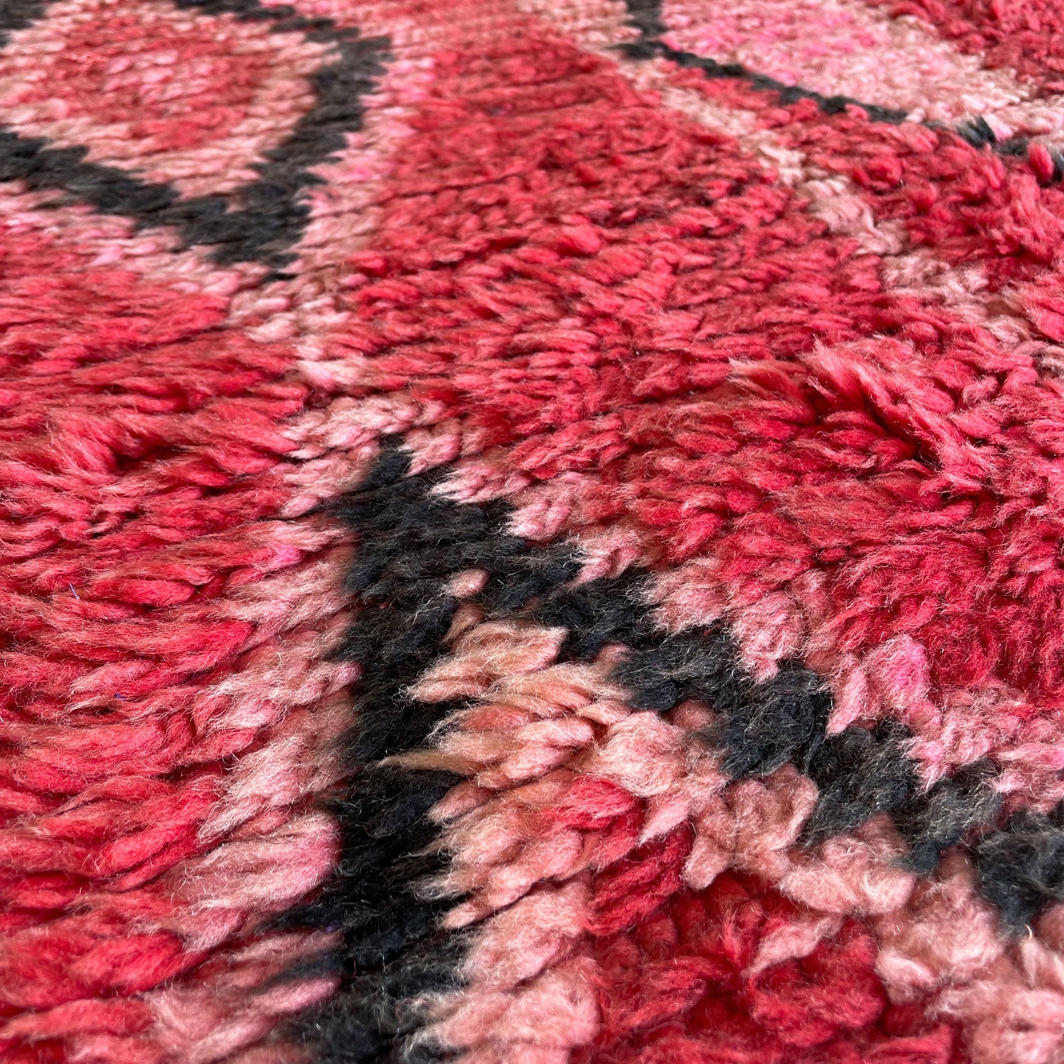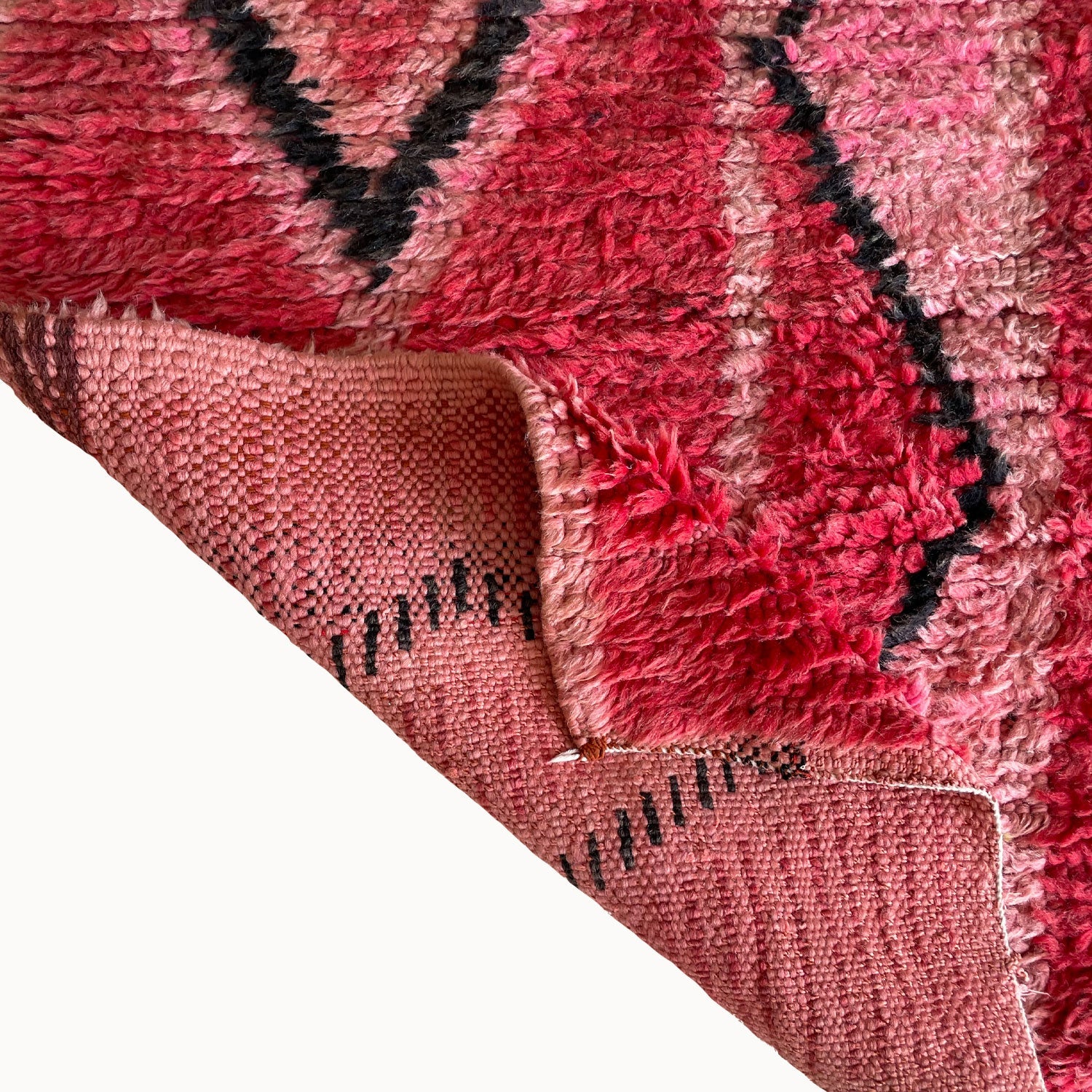 - Hand-knotted in the Atlas Mountains of Morocco using traditional Amazigh weaving techniques.