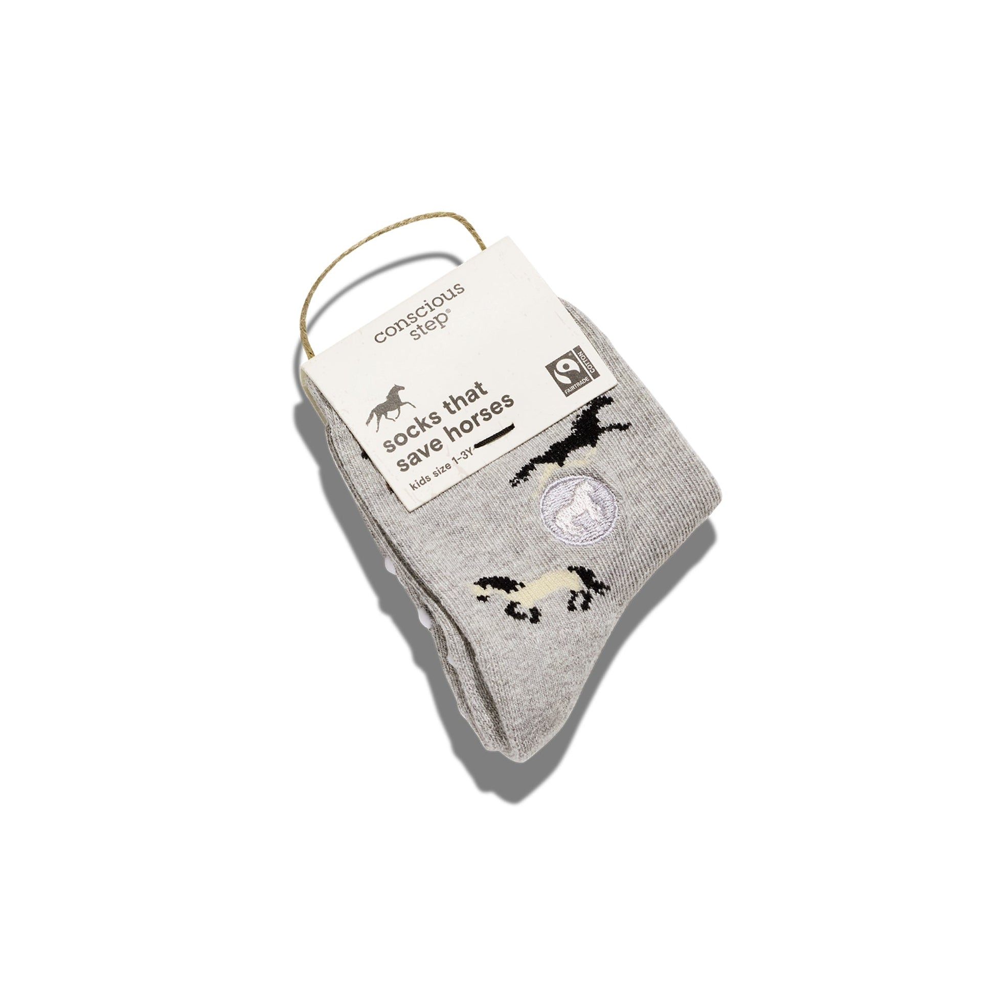 Giddy up! Designed with playful ponies and tons of comfort, these gray horse socks are perfect for kids who can’t get enough of their favorite foal friends.