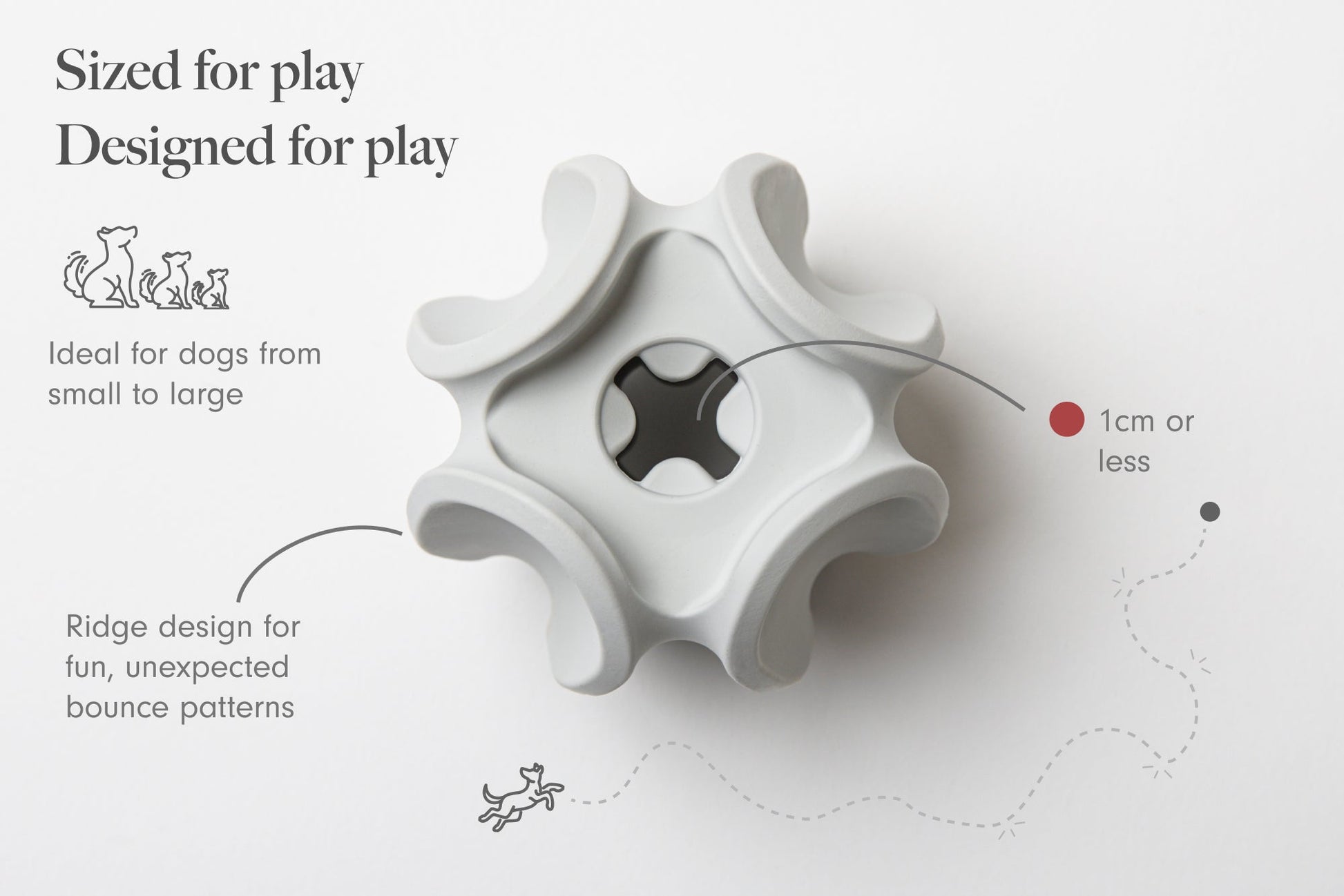 A sculptural treat-dispensing toy that keeps your dog engaged, challenged, and rewarded. Designed to wobble, roll, and release treats, it turns solo play into a satisfying mental workout—helping to reduce boredom, channel energy, and support better behavior. Crafted from durable, non-toxic, natural rubber, it’s gentle on teeth yet tough enough for daily enrichment. Dishwasher-safe and beautiful enough to leave out, it blends seamlessly into your home. Every toy includes free live support from certified dog experts, so you can unlock its full potential for play, training, and mental stimulation.