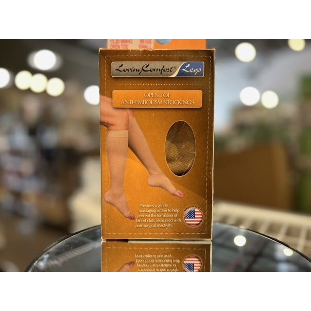 Loving Comfort Stockings Open Toe Anti Embolism 15 To 20 Mmhg Medium, Beige