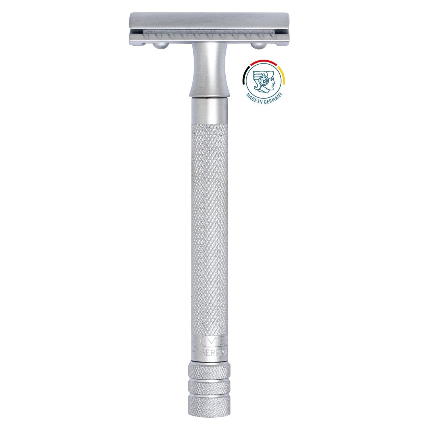 The MERKUR 22 was originally developed in the 1920’s. Its reliable quality makes it a timeless classic: the long handle and a straight foam edge ensure a particularly smooth shave. The MERKUR specific spacious blade gap allows a high soap flow and also makes cleaning noticeably easier. The long handle enables a smooth shave and the closed-comb is an all-rounder for the classic wet shaving. The generous blade gap allows high soap flow, protecting the razor head from clogging with cut hair or lather residue. Matt chrome finish.