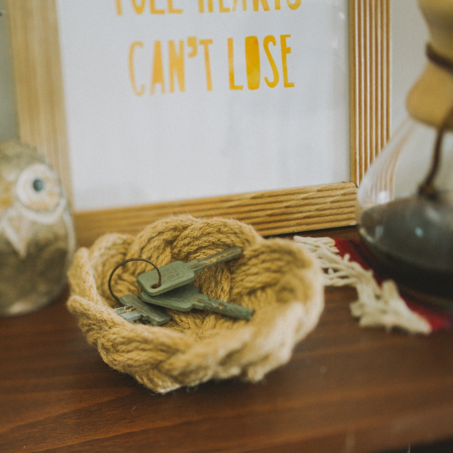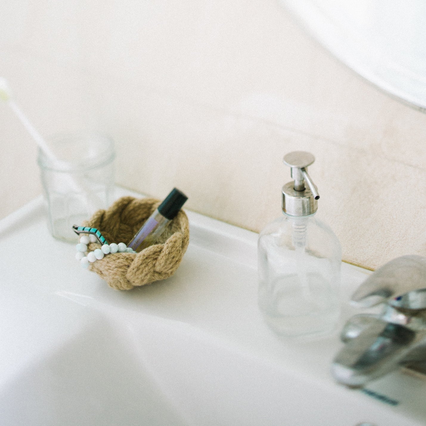 A more petite version of our best-selling believe bowl, this hand knotted mini bowl is truly one of a kind. Measuring approximately 4" wide by 2.5"tall, it is perfect as a small jewelry or change dish. Each bowl is handmade by a single strand of 8mm rope. Can be spot-washed by hand with cool water and set out in the sun to dry. If using any cleaner, please test it on the underneath side to make sure that it will not affect the fiber colors.