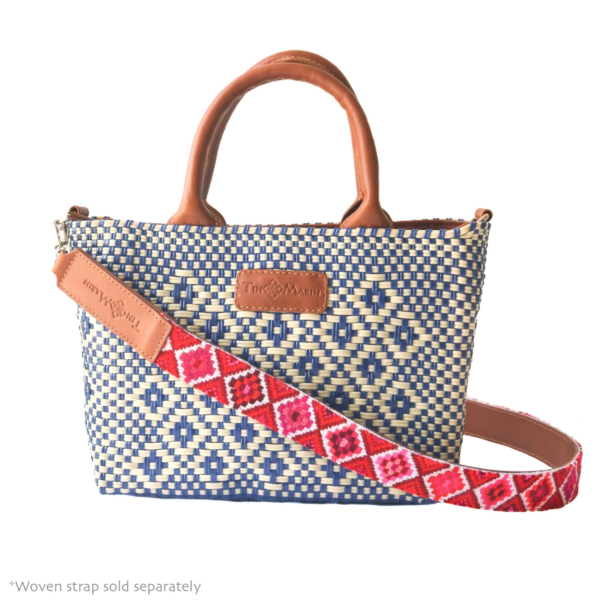 Crafted for style, versatility, and comfort, our iconic Small Woven Crossbody Bags is a timeless must-have. Handmade by Artisans in Mexico, this bag is not only lightweight and durable but also environmentally friendly, made from 100% recycled plastic. Its compact design and thoughtful features make it the perfect everyday accessory. Features: Sustainable Material: Made from 100% recycled plastic, combining style with eco-consciousness. Adjustable Comfort: Detachable adjustable leather crossbody strap (21” - 24”) and a 5” handle drop for versatile carrying options. Practical Design: Canvas lining with three interior pockets for organizing essentials like your phone, wallet, and more. Premium Components: Genuine cowhide leather accents and a secure zipper closure for added sophistication and functionality. Customizable Style: Compatible with our Mai Woven Straps—explore our collection to personalize your look. Each bag takes 20-40 hours to create, reflecting the exceptional craftsmanship and individuality of every piece. Slight variances in color and pattern add to its unique charm. Care Tip: The durable material is easy to clean, making this bag as practical as it is beautiful. Handcrafted in Mexico with love and tradition, this crossbody bag supports over 200 artisans while celebrating the beauty of sustainable craftsmanship. *The Mixte design is also available as a Medium Crossbody, Medium Crossbody Drawstring Bag, Large Crossbody, Large Crossbody with Tan Leather, Tote and Super Tote. Take a look at our complete Size Chart with the dimensions of every bag to make sure you're getting the bag that's perfect for you.