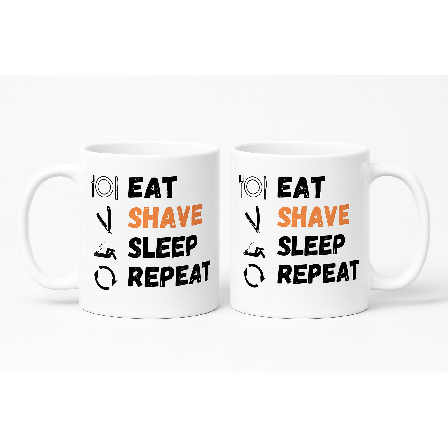 Kickstart your day with a mug that speaks your language — Eat. Shave. Sleep. Repeat.