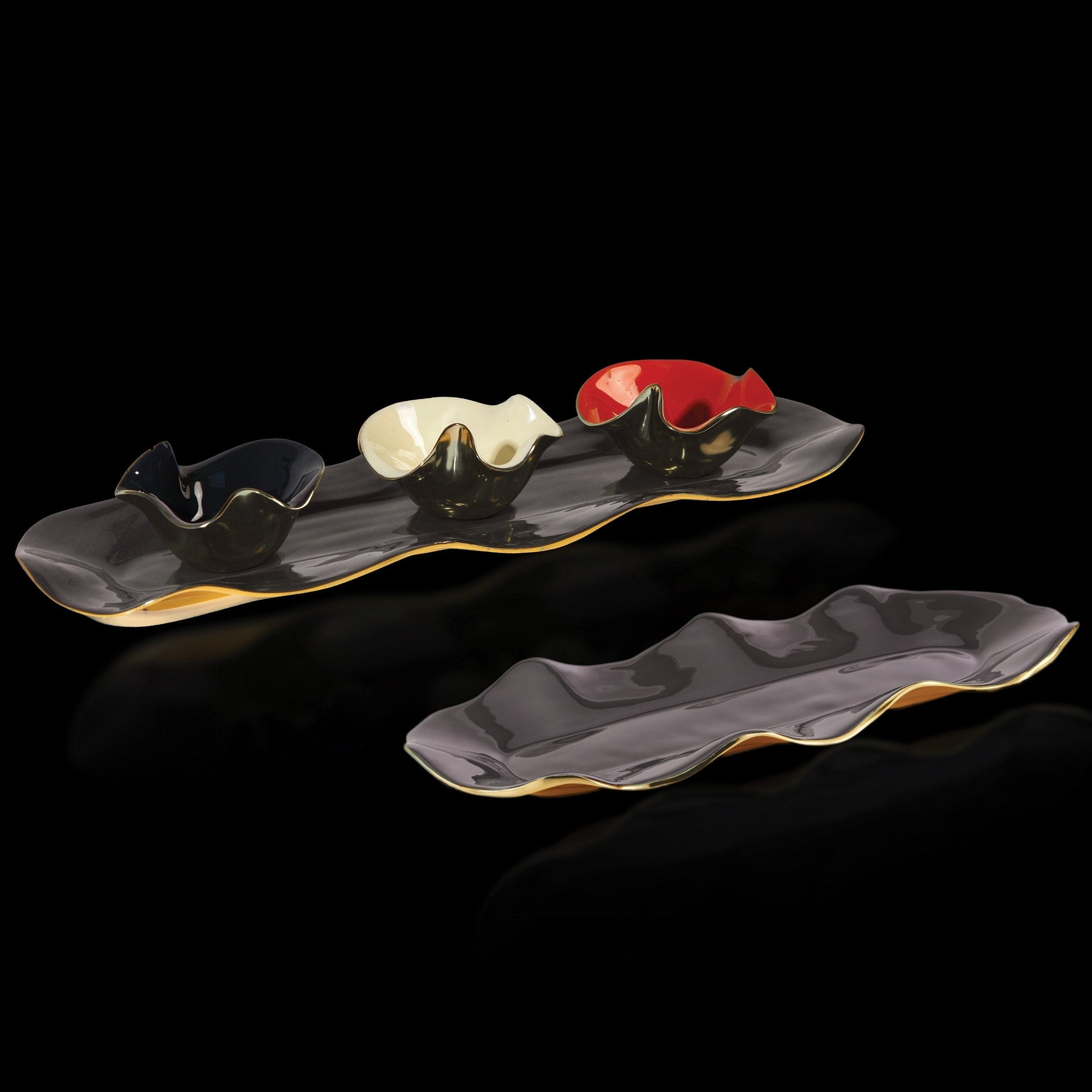 Skilled craftsmen hand apply a food safe enamel on the gold metal surface, giving it the fragile and delicate beauty of porcelain but it will never break. Each of our creations is designed in our San Francisco studio. Master craftsmen using centuries old technique of sand casting create the original mould and skilled artisans hand create every piece, with pride, in our family owned factory. Details Size: 2.5"H x 4.25 Dia Finish: Gold, Graphite, Orange, Oyster Material : Aluminum, Enamel Use and Care Given its handmade and hand-finished nature, variations in the piece are to be expected and celebrated. No two pieces are exactly alike. Food Safe Hand wash with mild soap, water, and towel dry. Do not use abrasives or chemicals to clean as the metal may scratch and discolor. Not dishwasher safe