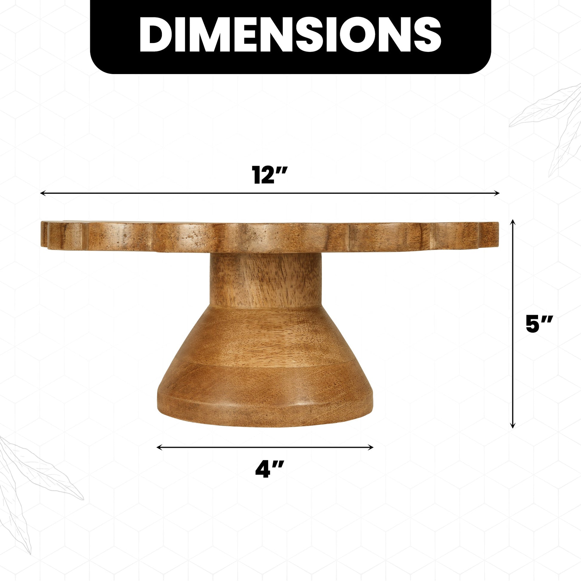 Mela Artisans “Scallop” Wooden Cake Stand Rustic: This floral-shaped vintage cake stand is made from durable Mangowood and measures 12” x 4” x 5”. The cookie display stand and cake base has a simple and refined design that can complement any decor style, from rustic to modern. You can use the wooden stand for cake to store and serve a variety of pastries and cupcakes, making it a healthy and convenient choice for your kitchen counter or dining table. This rustic cake stand is also easy to clean and maintain, adding a touch of elegance to your home.