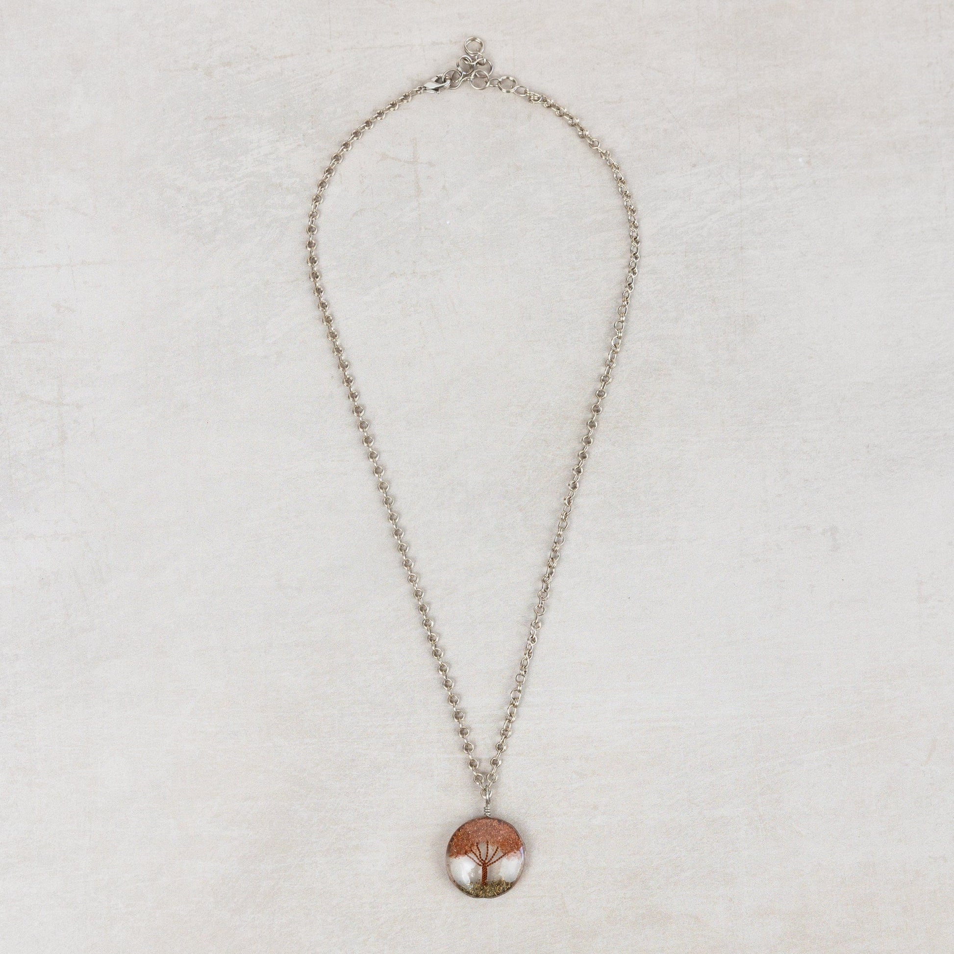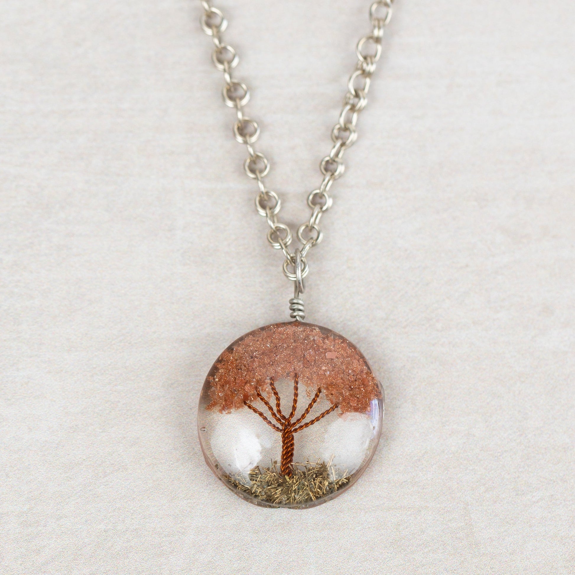 What a truly special piece the Sephira Life Tree Pendant Necklace is! A beautiful, blooming tree of life design is embedded into clear resin, which hangs as a pendant from a silver-toned chain. Makes a perfect gift for a beloved grandparent or family member, symbolizing ancestral roots. Lovingly handcrafted by artisans with Intercrafts Peru, a cooperative with more than 700 makers who come together to strengthen communities by providing access to health care, loans, advances, and training while preserving traditional crafts such as Andean coiled wool weaving and jewelry-making.