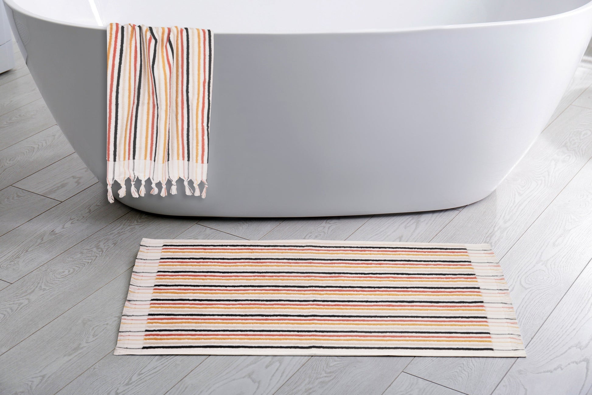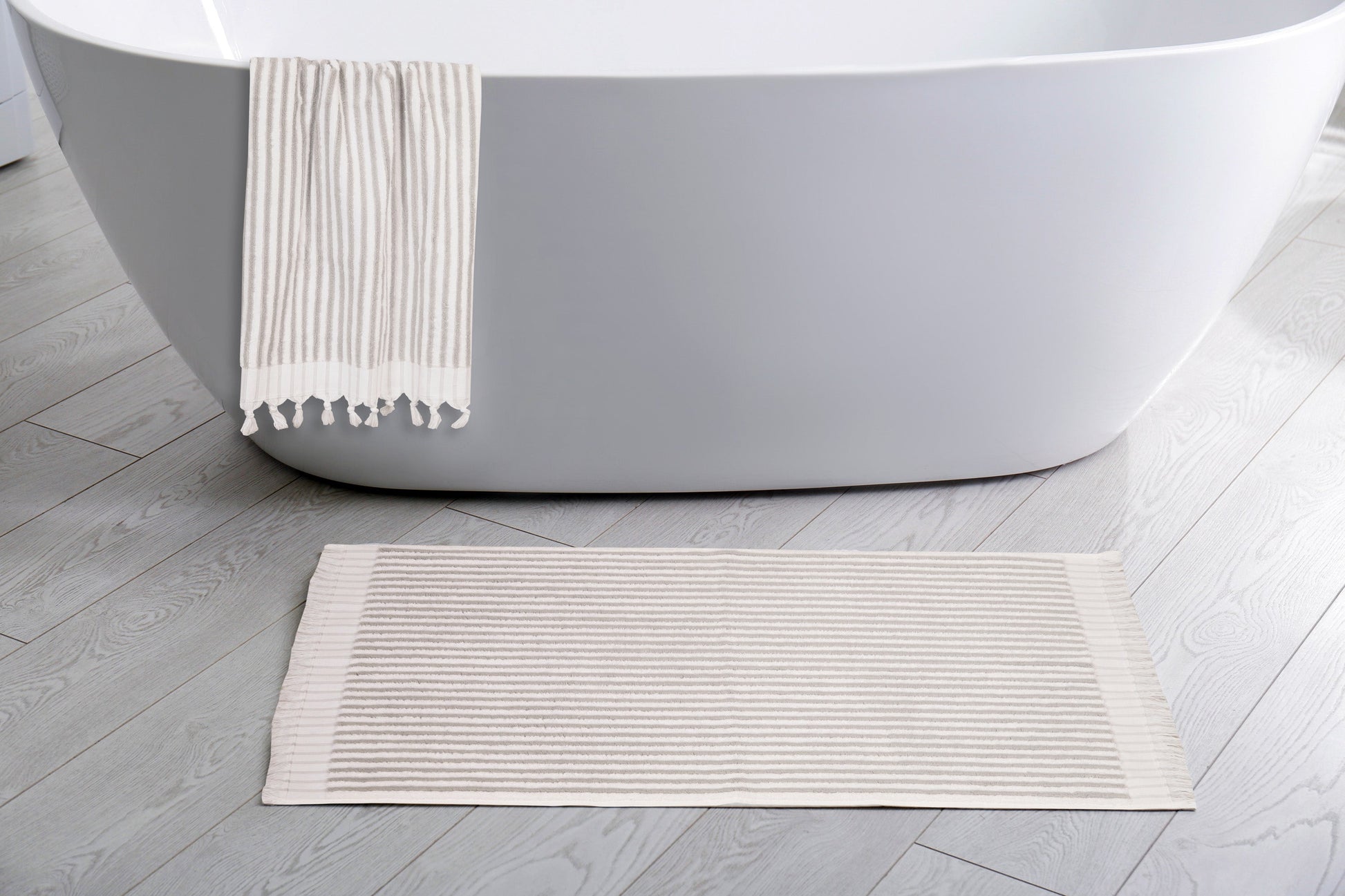 Our Stripes Bath Mat is expertly crafted with intricate details from the finest long-staple Turkish cotton. Soft under foot and super absorbent, this mat adds a worldly charm to any bathroom.