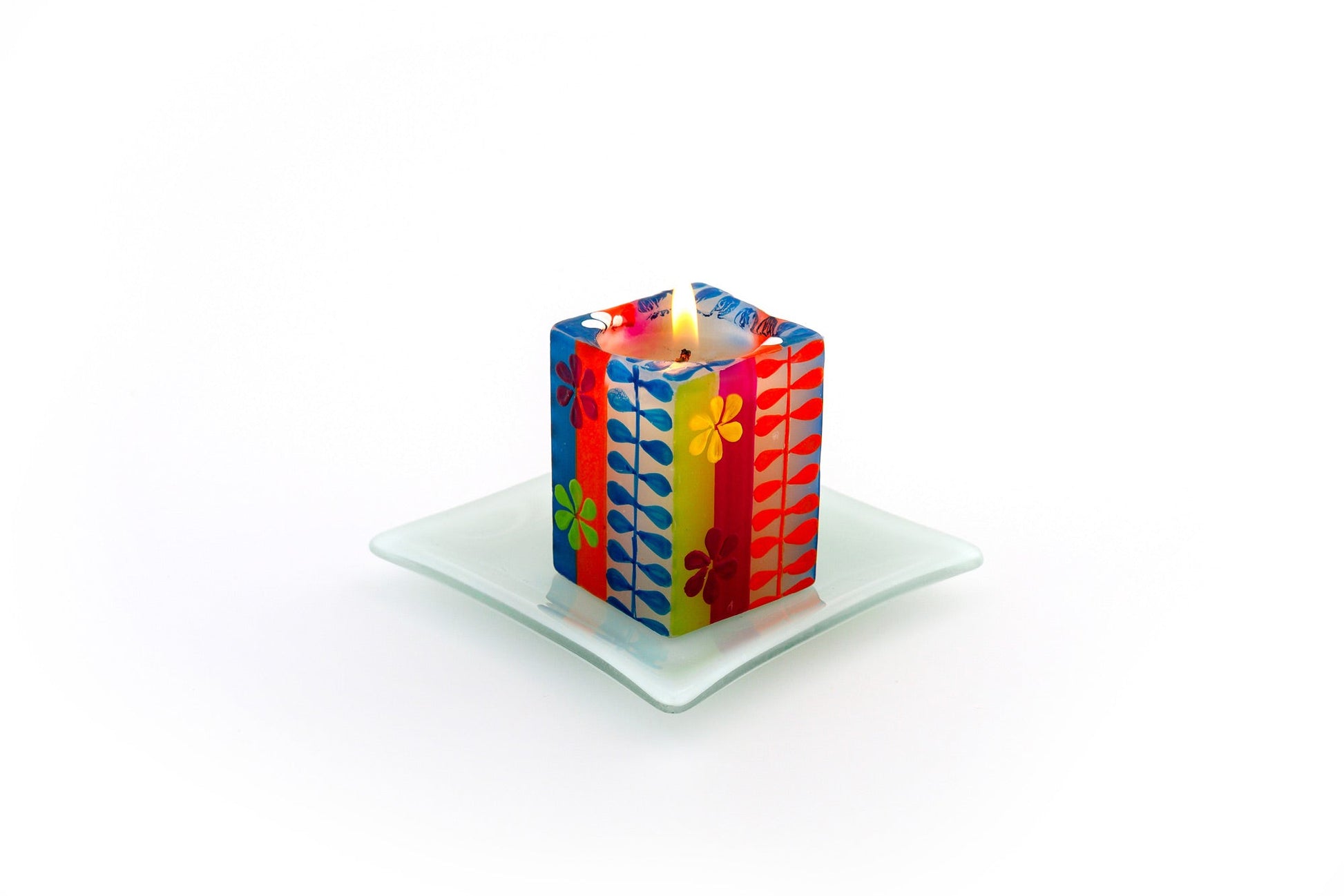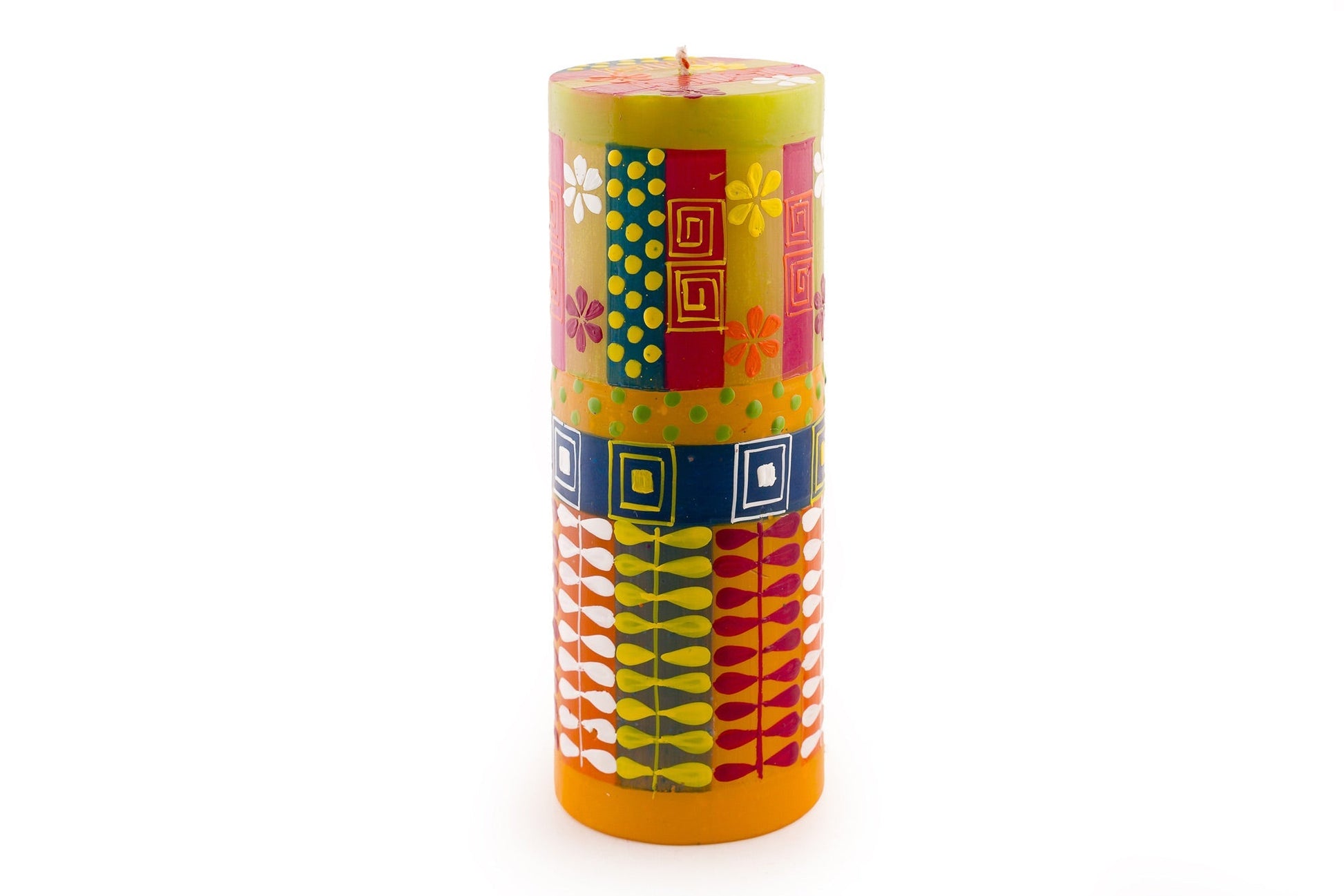 Colors, flowers and fun adorn our Summer candles! *Lovingly hand poured and hand painted in South Africa. *Crafted primarily by single mothers from the local rural community. *On average, each artisan supports an extended family of 12-15 people. PRODUCT DESCRIPTION: *Highest quality natural paraffin wax with 100% cotton wick *Unscented, smokeless, and free from added toxins *Tapers packaged as a matched pair *Each candle is uniquely made. Your delivered candle will likely appear slightly different from the website photo, but consistent with the theme of the collection. CANDLE CARE: *First burn time: 1-hour for every inch diameter *Wicks should always be cut to ¼” prior to lighting *Avoid drafts – they cause dripping! *Ensure candles are extinguished prior to leaving the room Learn more about the artisan hands that make these fair-trade products!