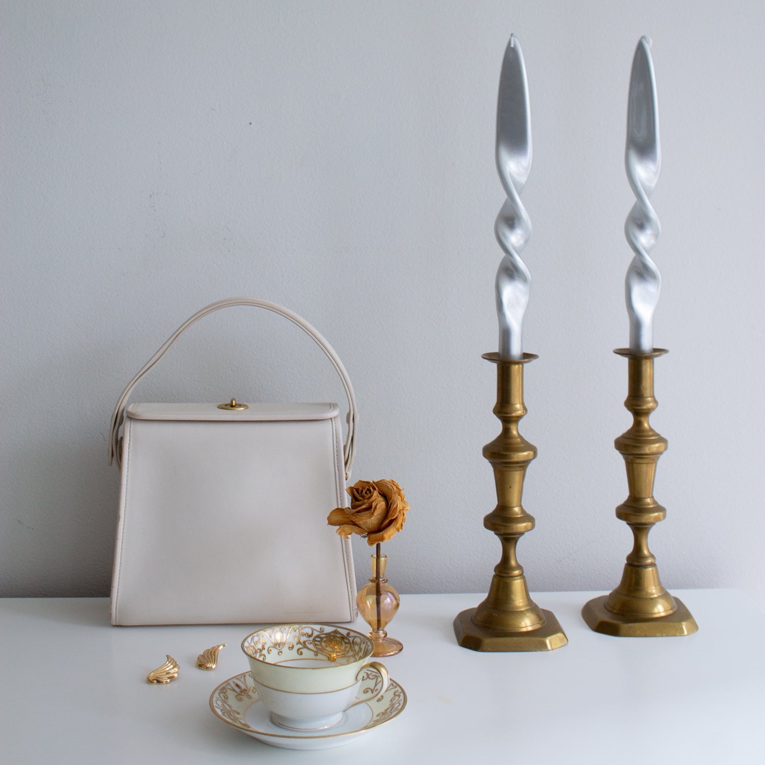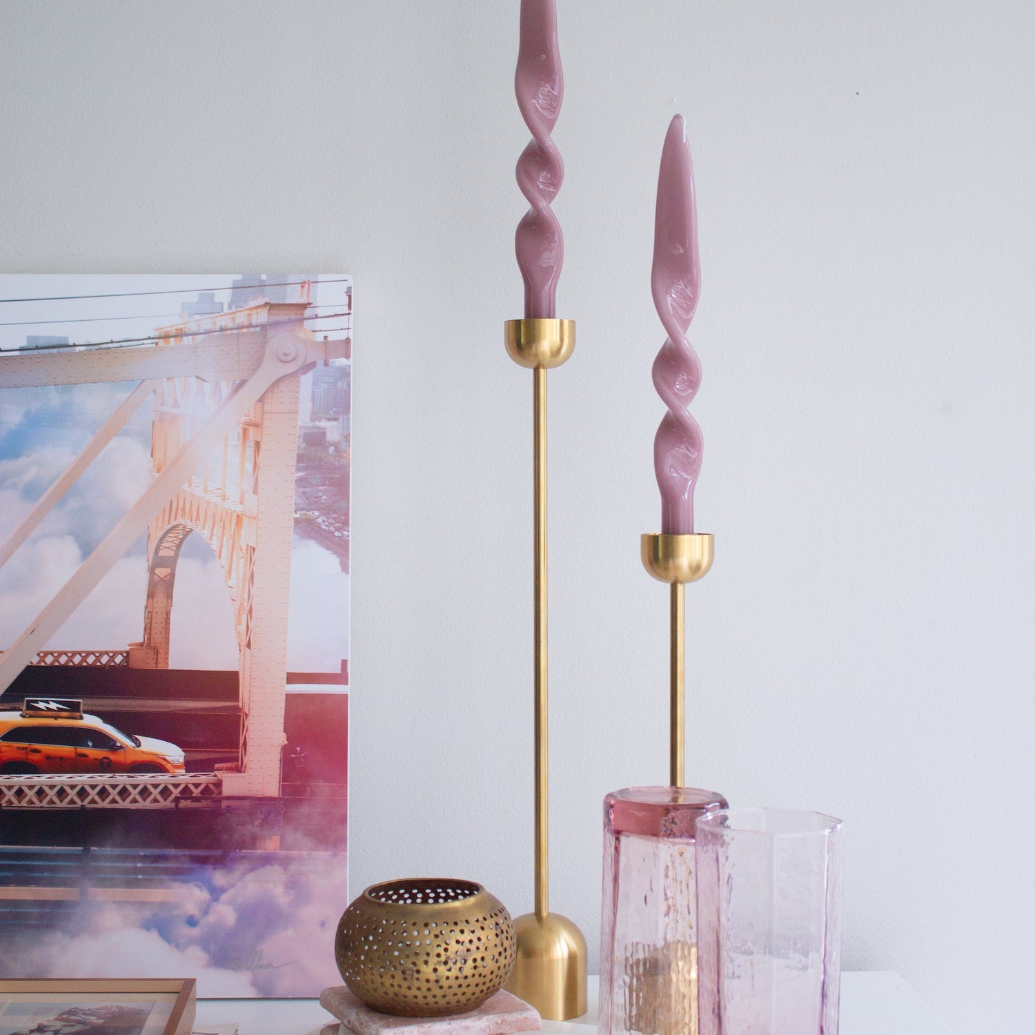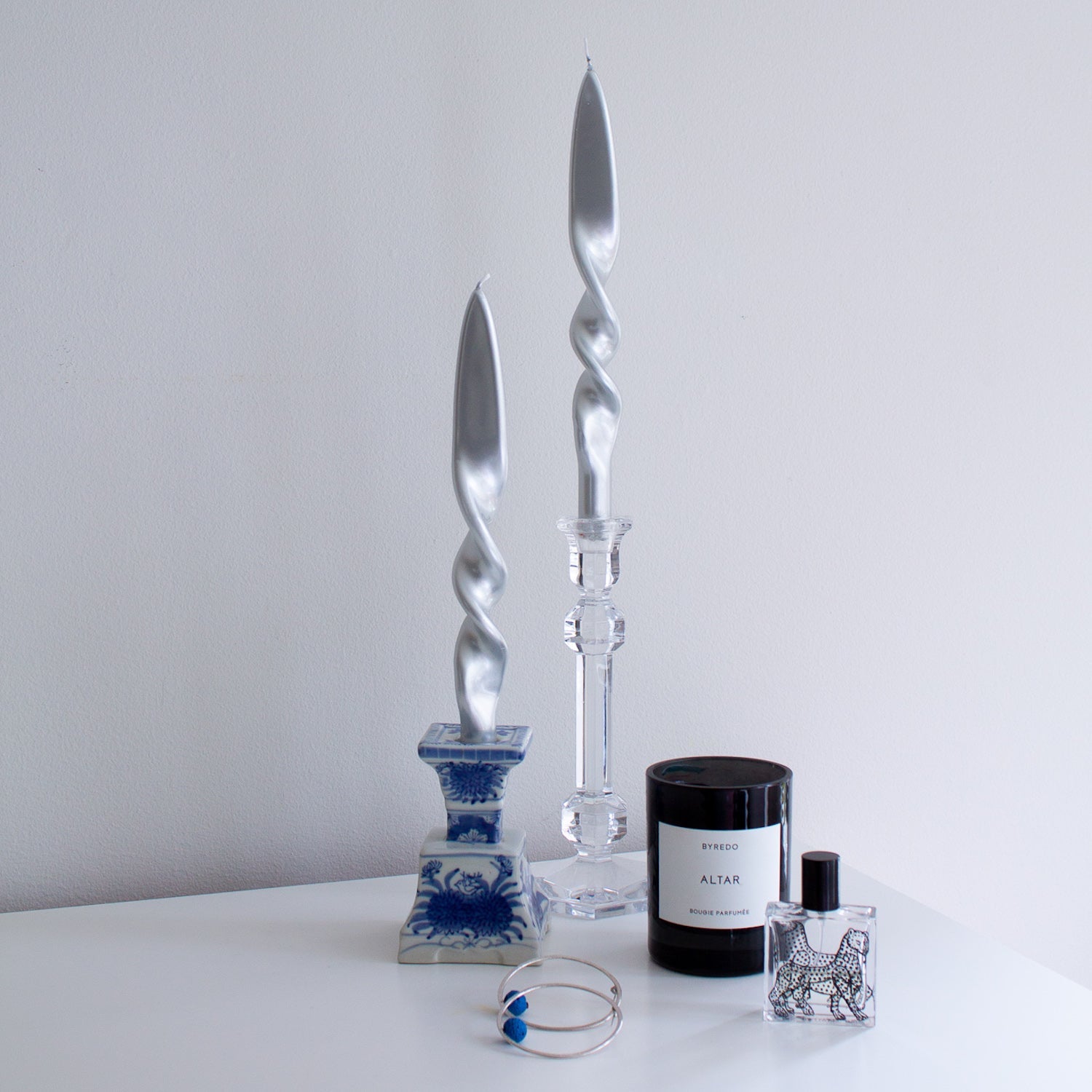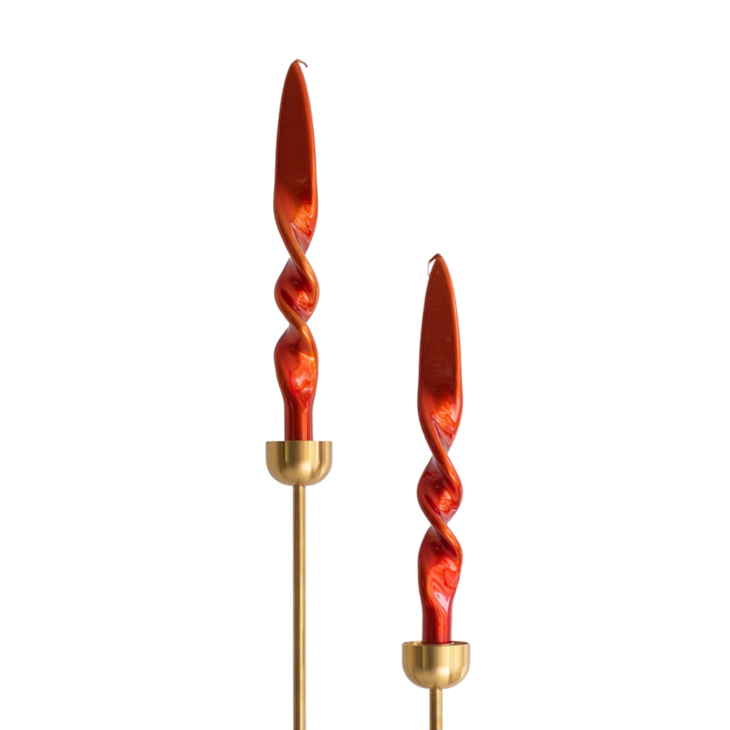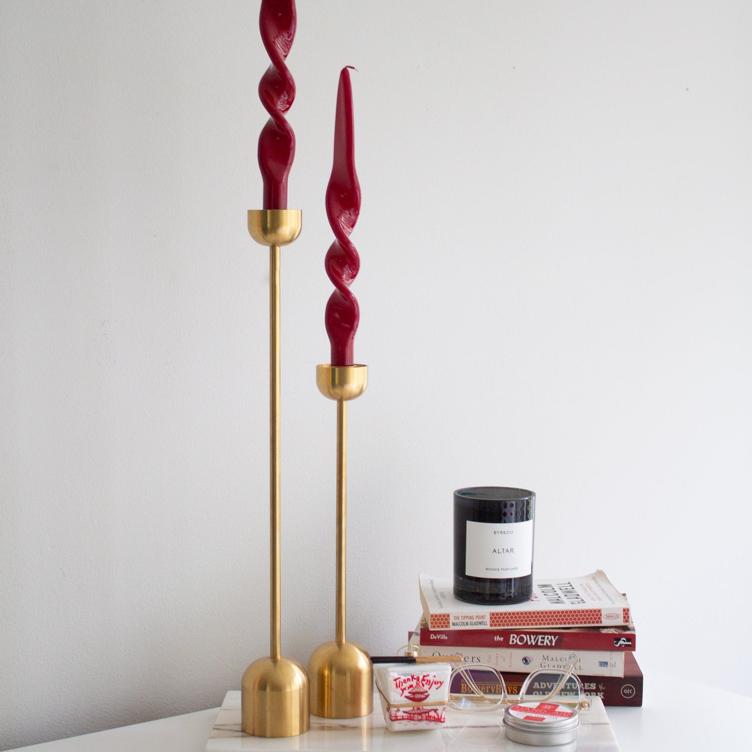 High-gloss taper candles that are nothing but chic. style them sky high on minimalist candle sticks or grab your heirloom / vintage ones and adorn your holiday table. Quite the accent for all forms of decor (boho, vintage, retro, minimalist, etc.) Finished by hand from an Italian family that has been making candles since the 1800s. High gloss. Set of 2 in a gift box.