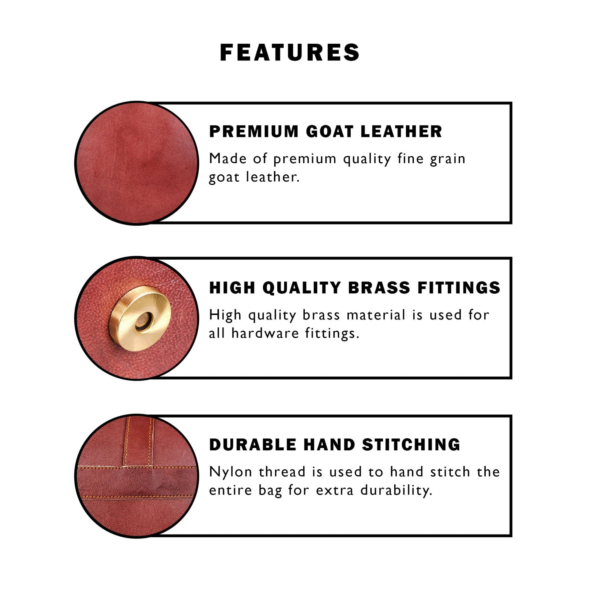 - Material: Full-Grain Goat Leather