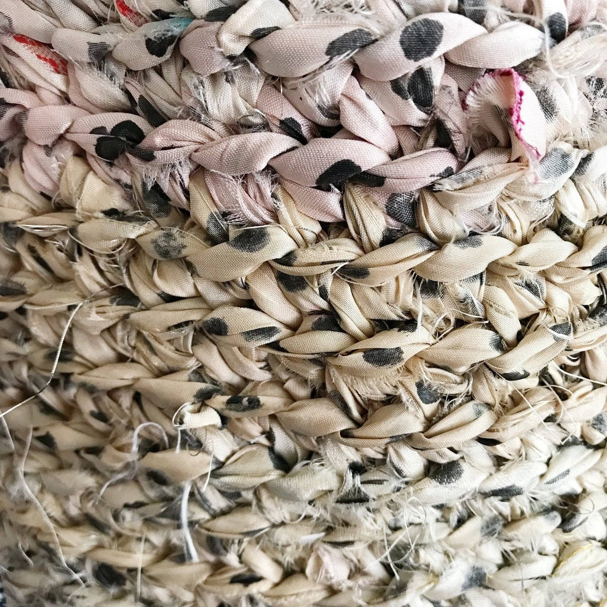 These super simple and sturdy basket is perfect for holding just about anything! Create a stylish storage option for your home - crocheted from our Block Printed Handmade Sari Silk Ribbon Yarn, this basket can be made in a variety of colors and is a great eco-friendly option.