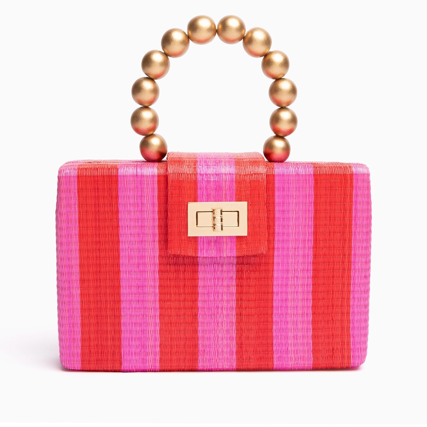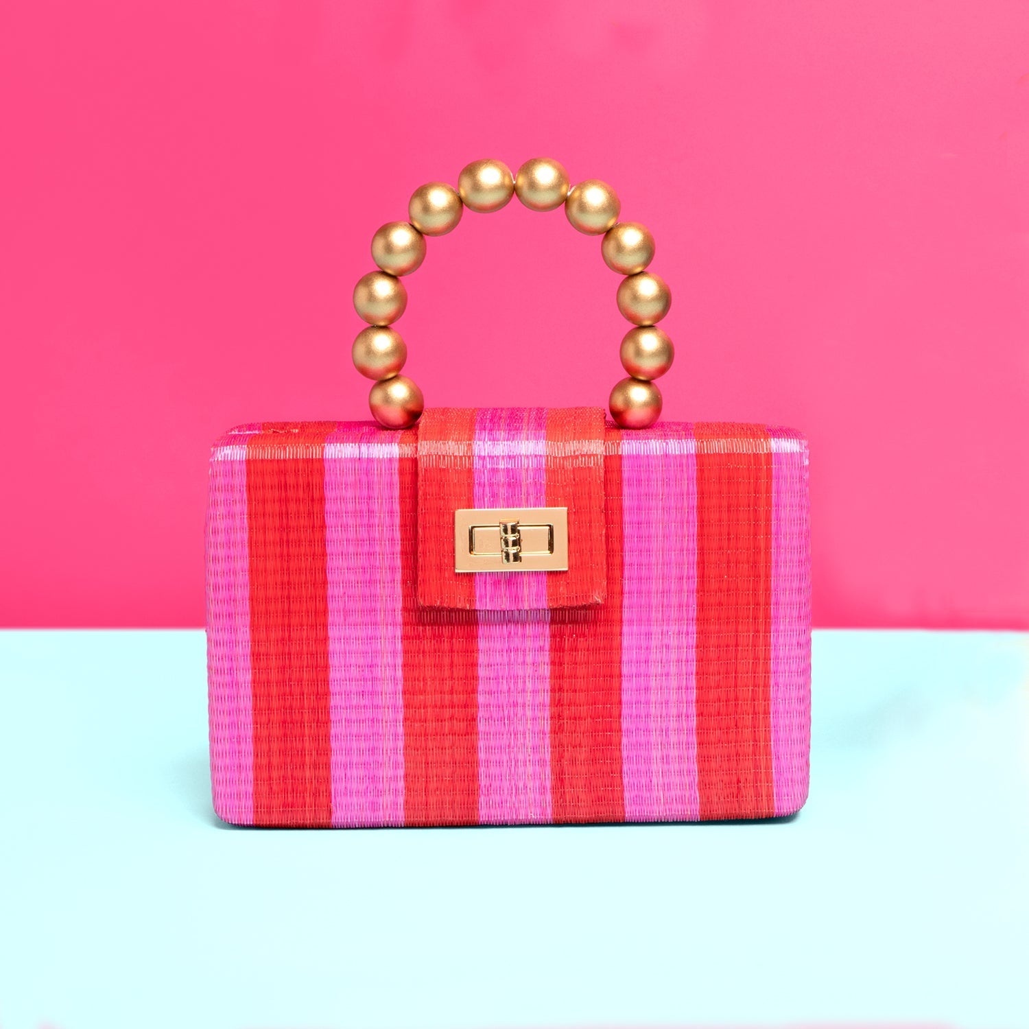 THE LOUISA Red & Pink Stripe Woven Straw Clutch Bag