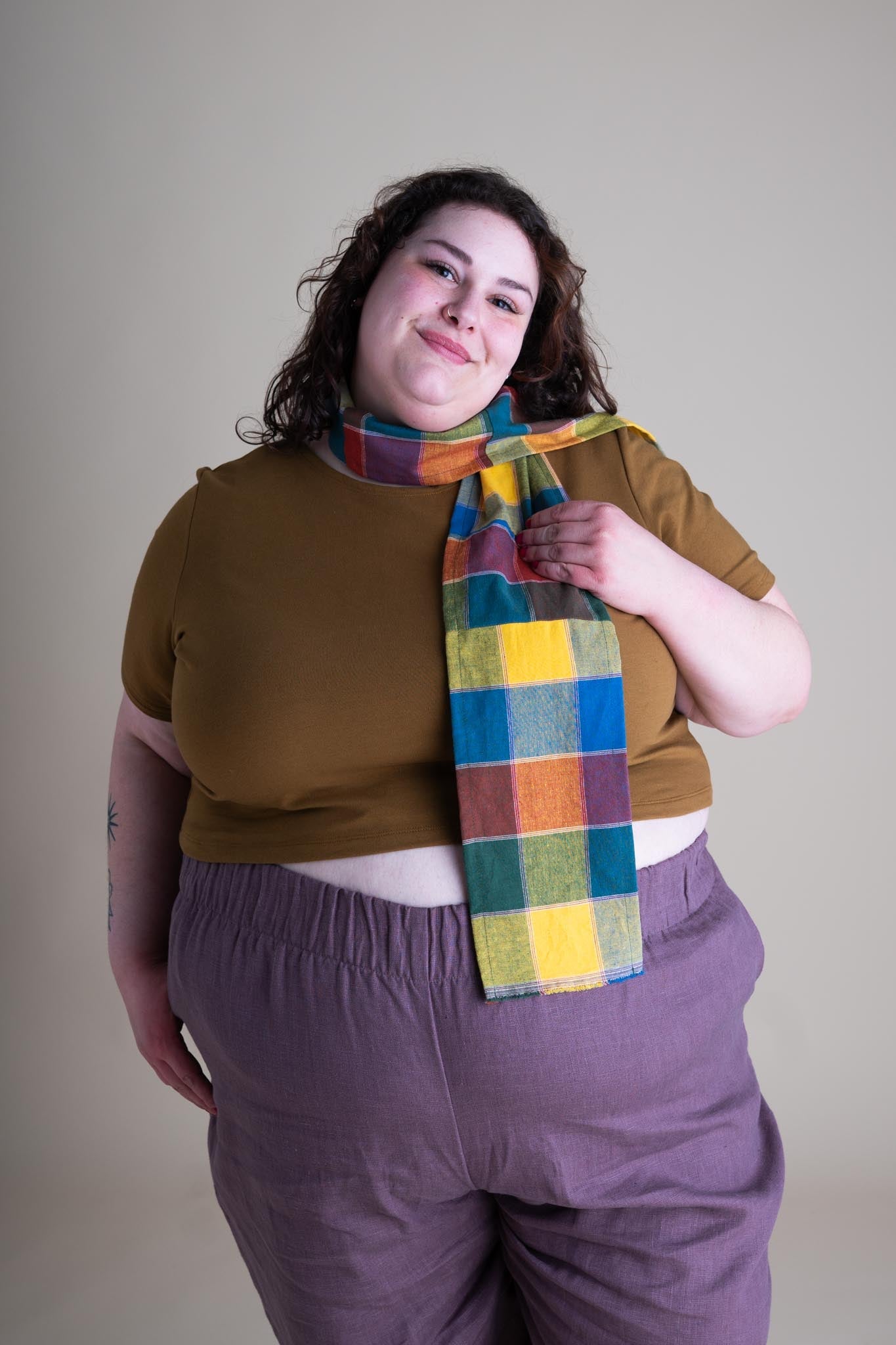 Made from a unique blend of 55% hemp and 45% organic cotton, this cute and artsy scarf is crafted from our kaleidoscope scraps.