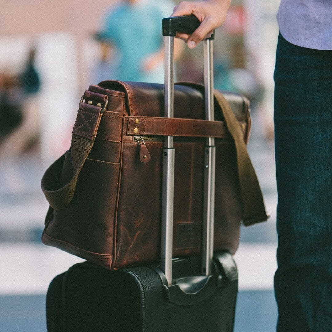 Our Wilson Leather Satchel Messenger Bag is crafted from water buffalo hide with a green canvas-lined interior and genuine brass hardware. It’s 17" long, 12.5 high, and 5" wide, the ideal size to hold a 16" laptop. This bag is designed to securely hold the items you need to bring along on your travels. Built for comfort, this messenger bag has adjustable 2" wide shoulder straps, so you can comfortably carry it from the office to travel. This bag is more than ready for any adventure you can dream up.