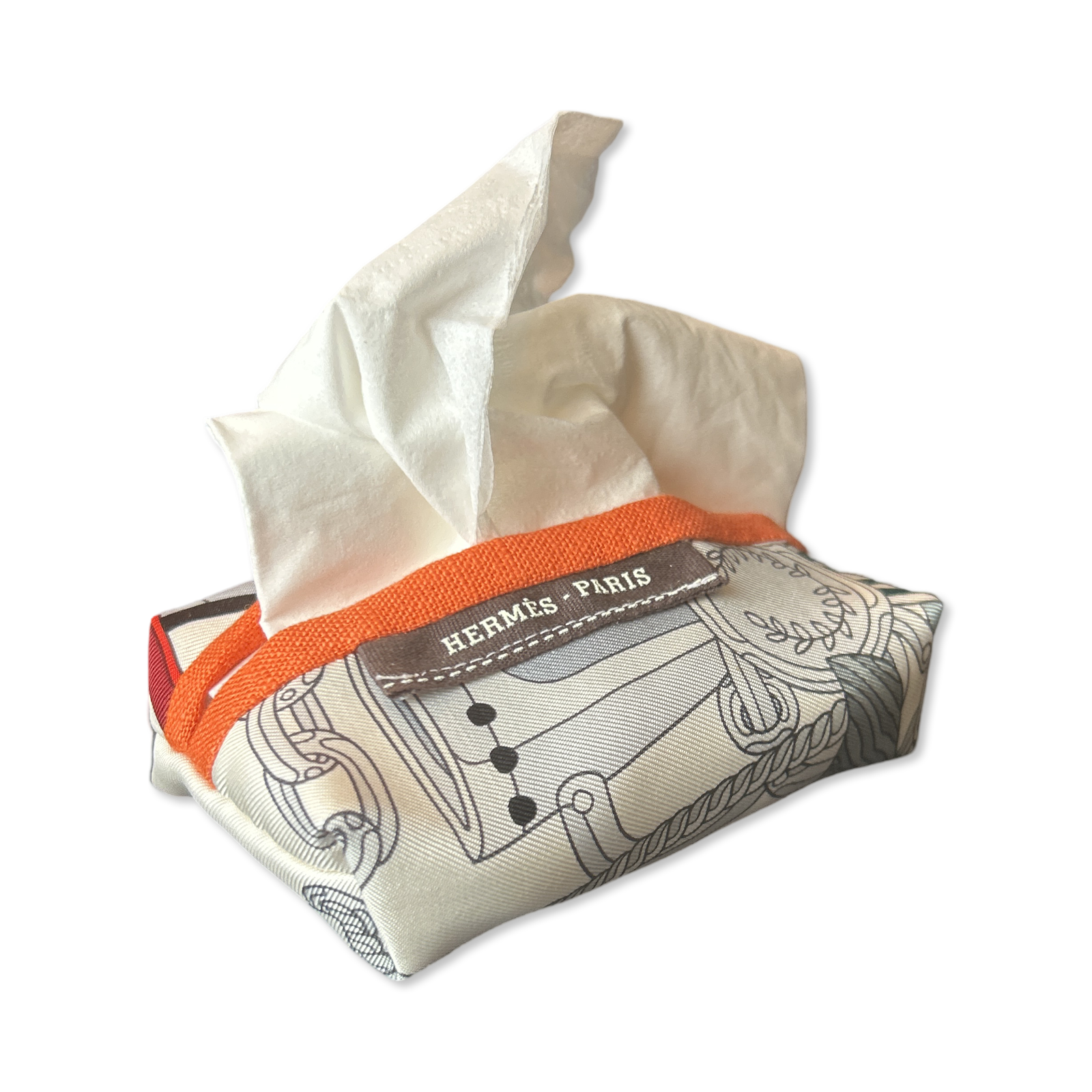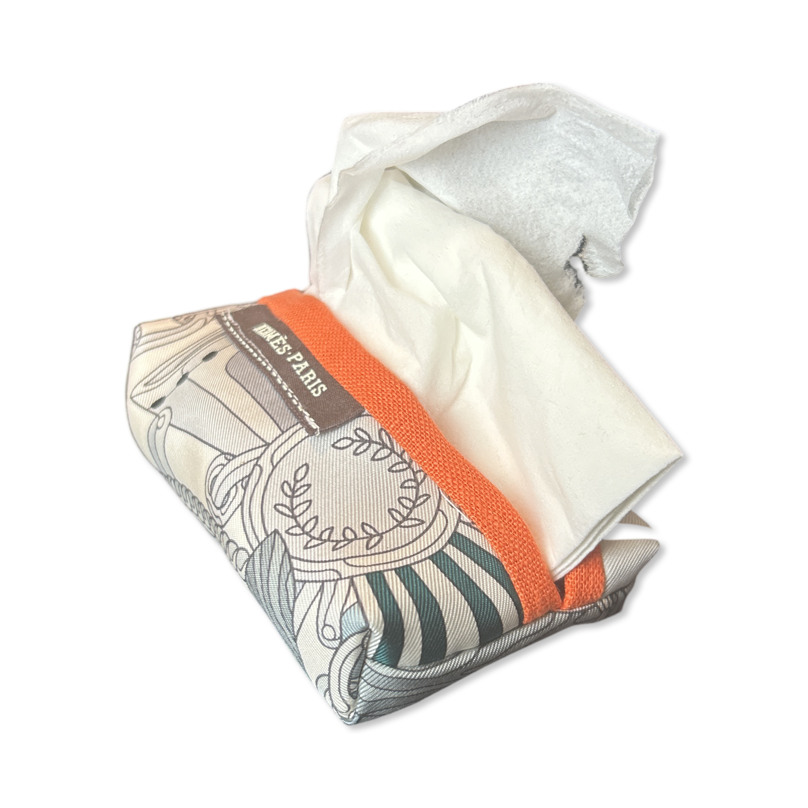Reimagined from the world’s finest collection of vintage Hermes scarves, our travel tissue pouch is a stylish fashion accessory for your on-the-go lifestyle.  Now you’ll always have a tissue when you need one.