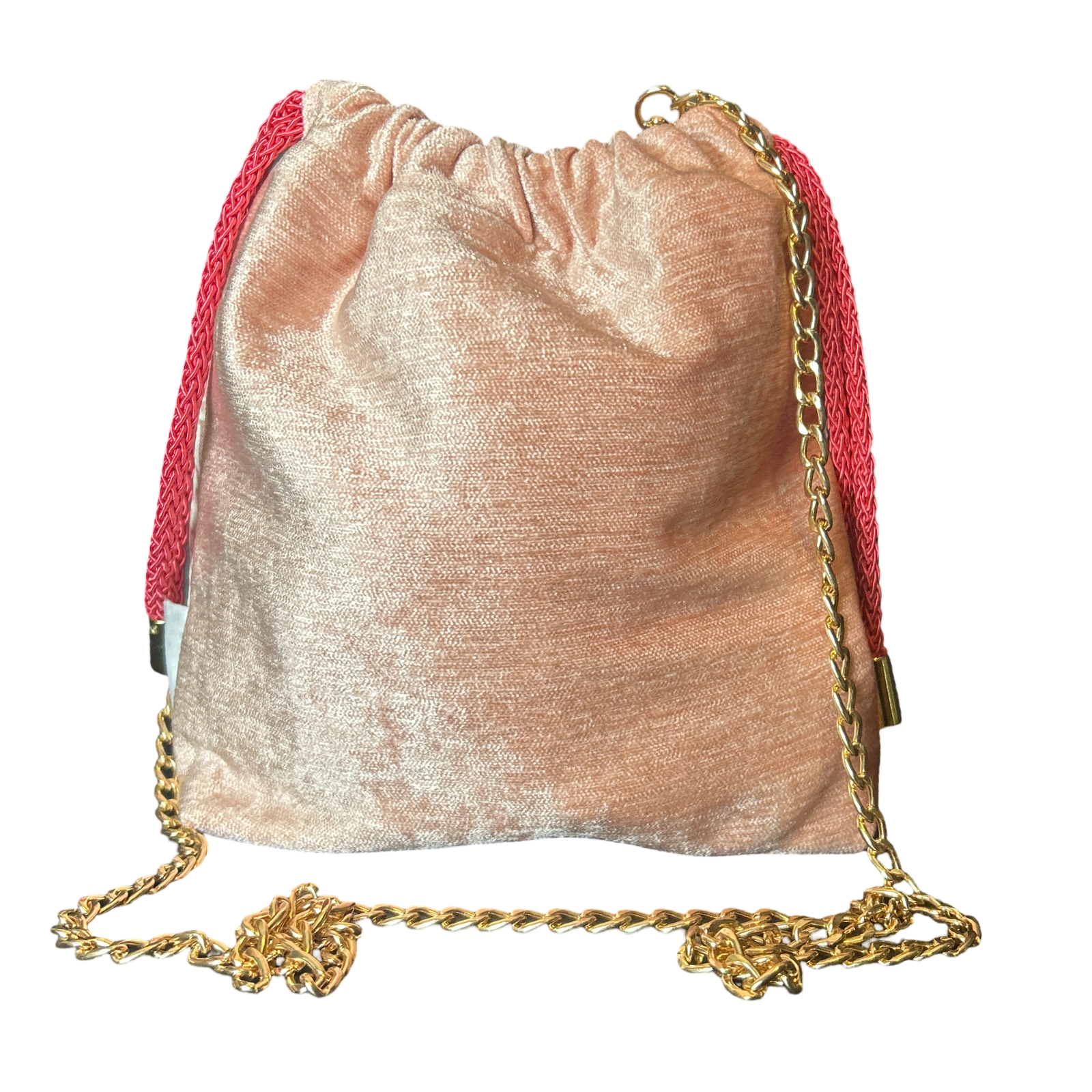 Trotter Pink Vintage Silk Scarf Drawstring Crossbody Bag