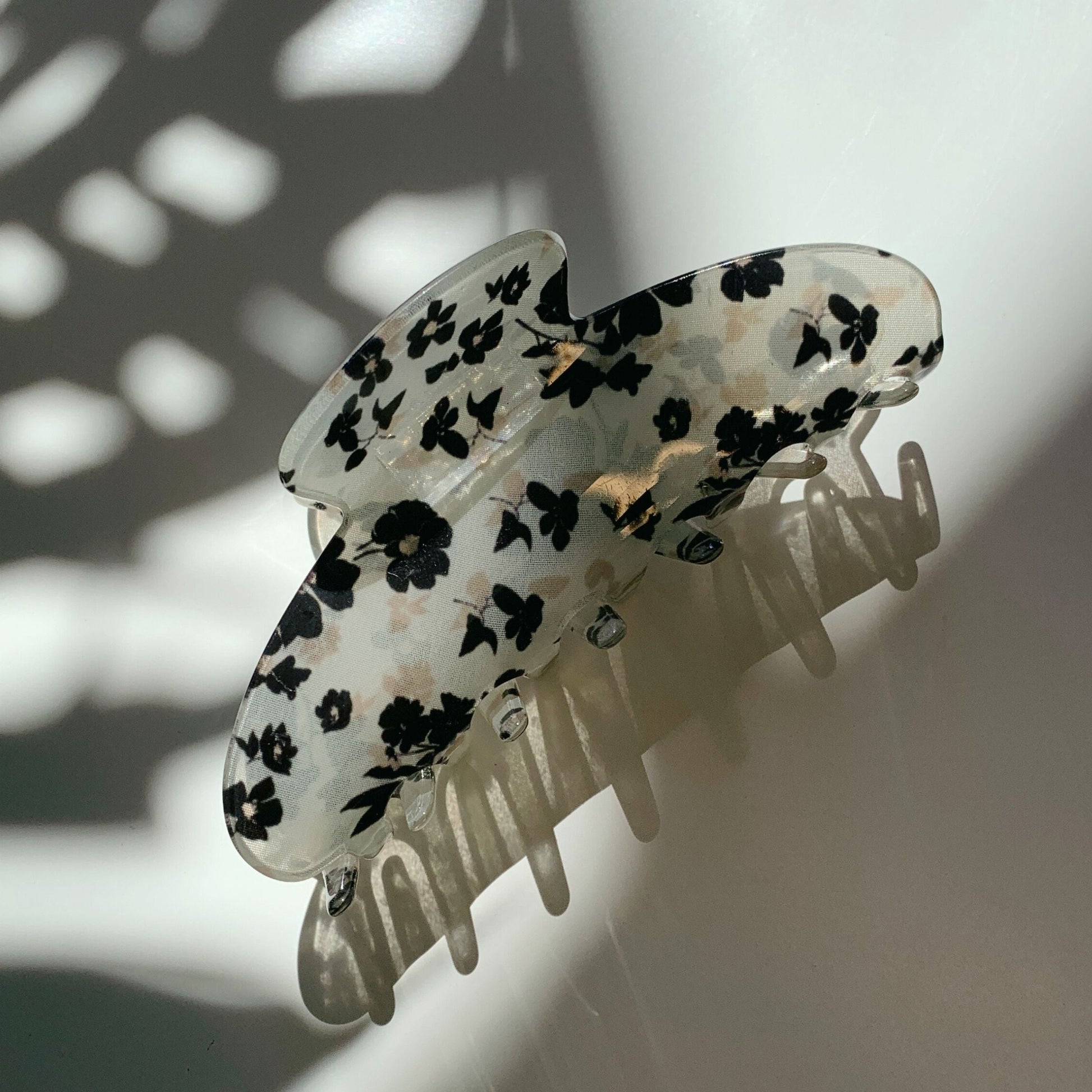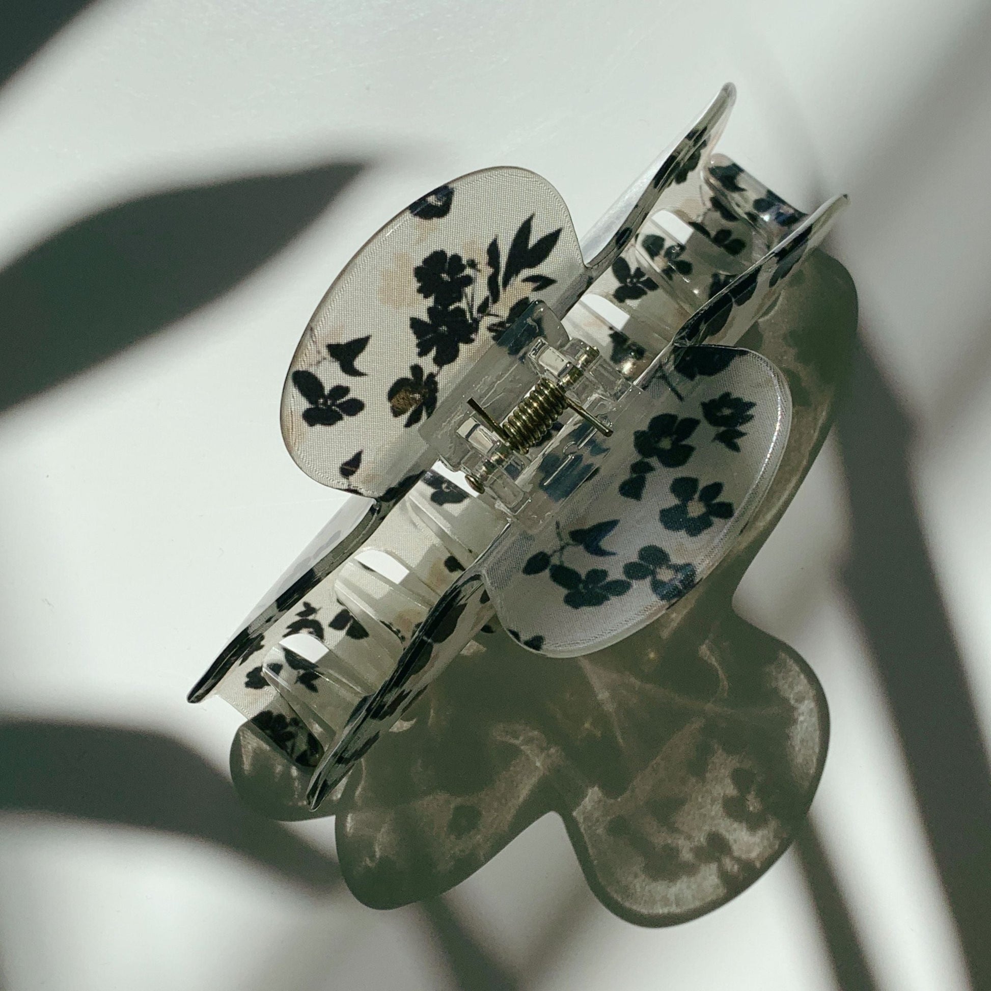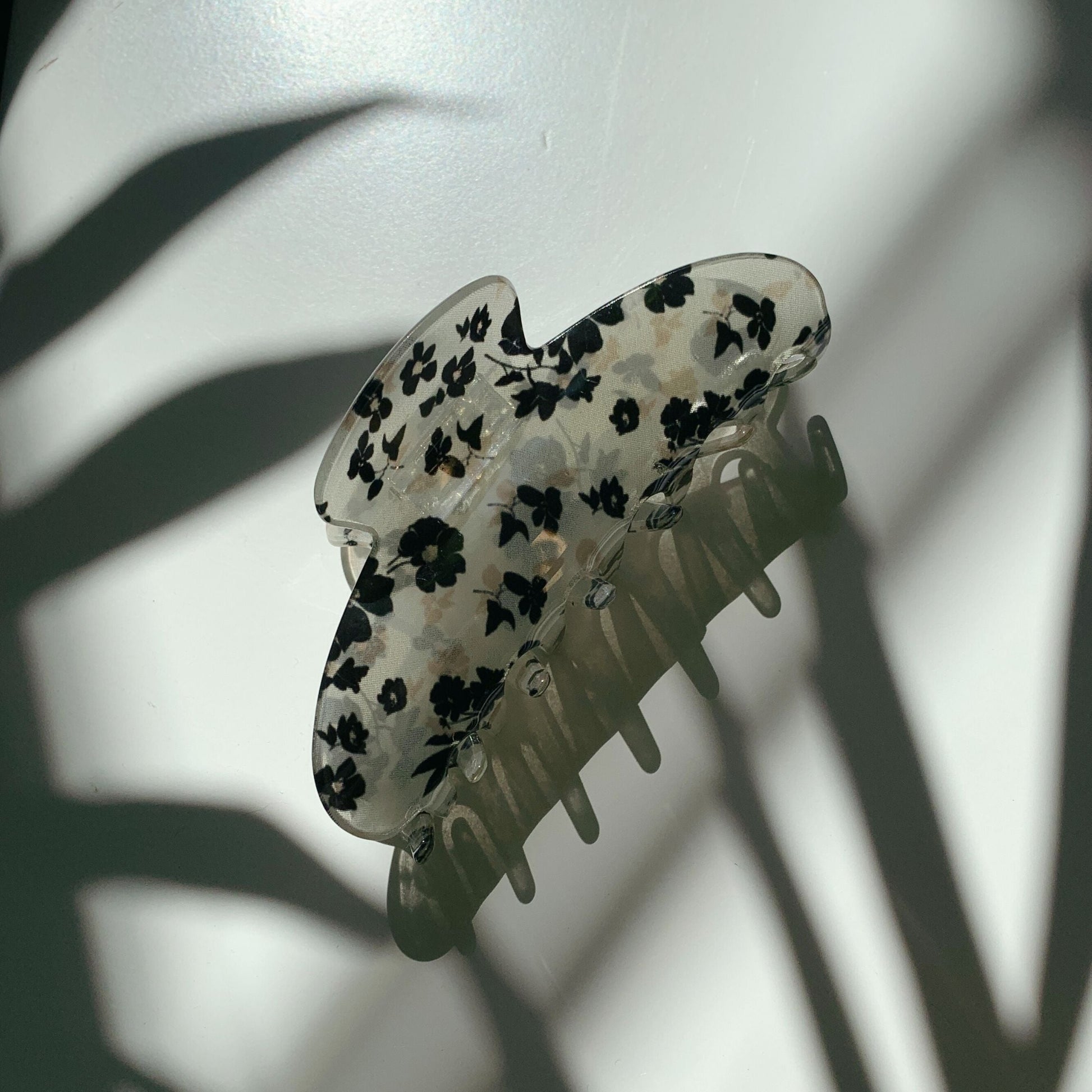 Velvet Claws French Floral Black Flowers Hair Claw | Claw Clip in Velvet Travel Bag