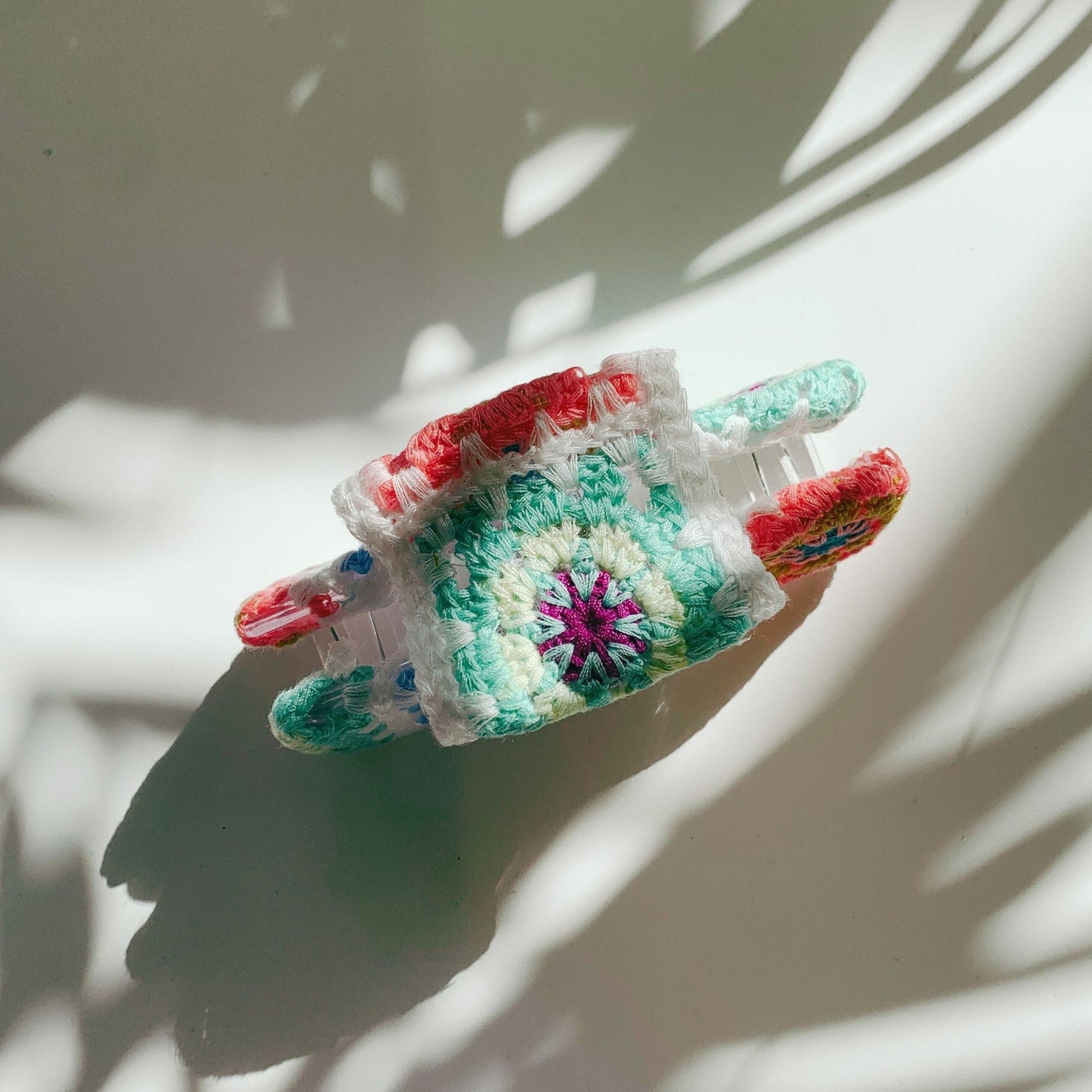 Velvet Claws Granny Square Crochet Covered Hair Claw | Claw Clip in Velvet Travel Bag