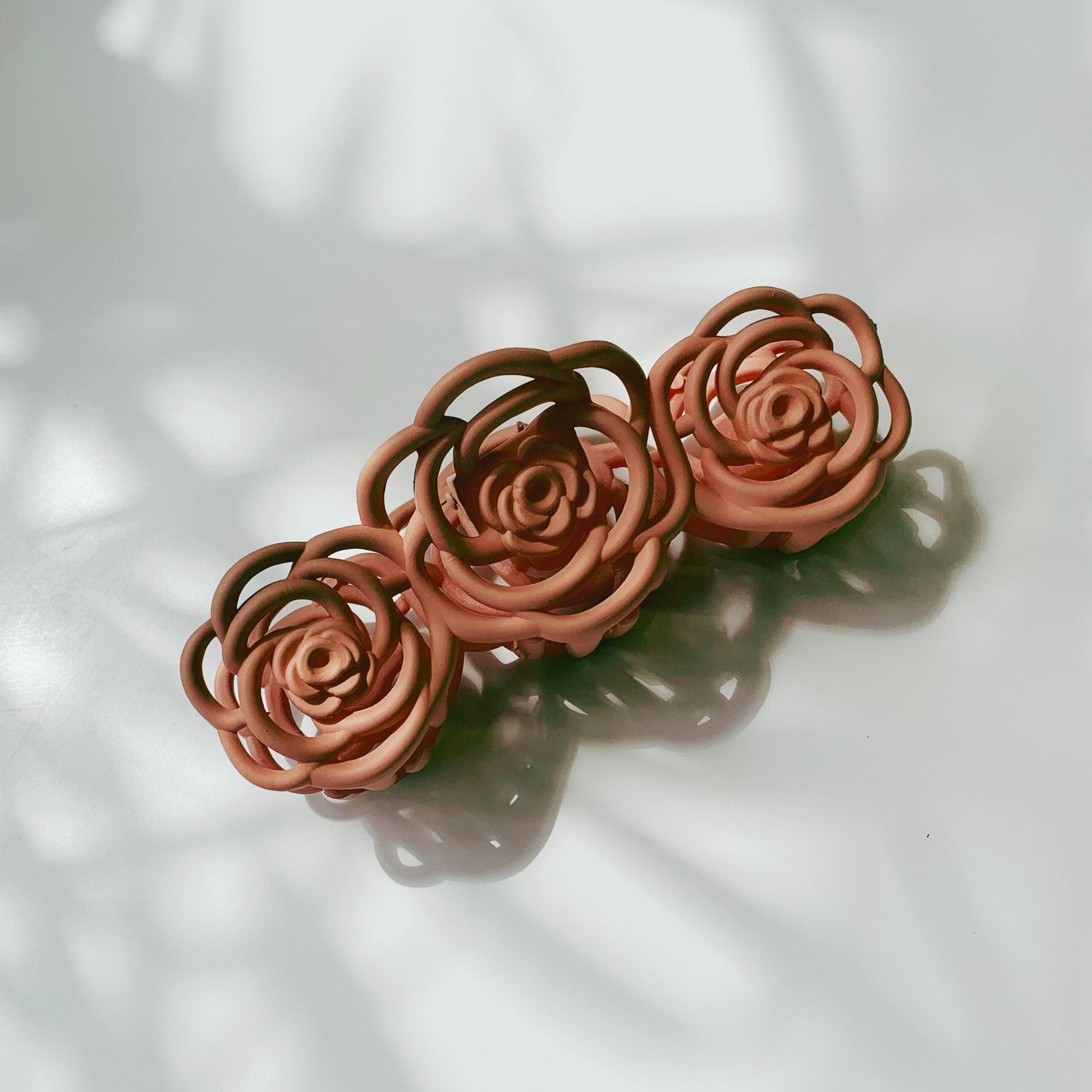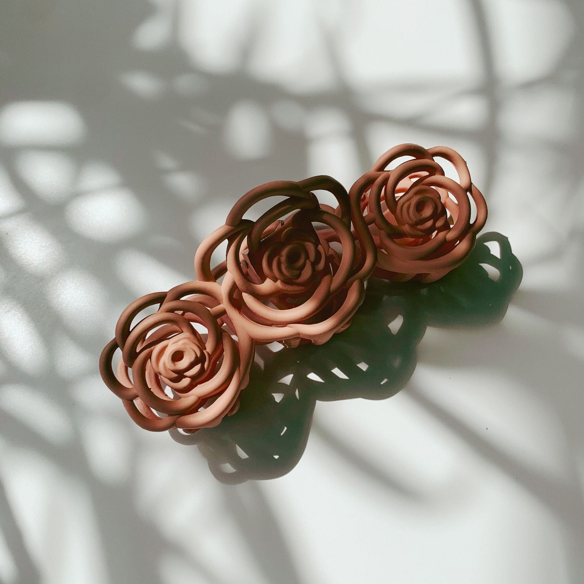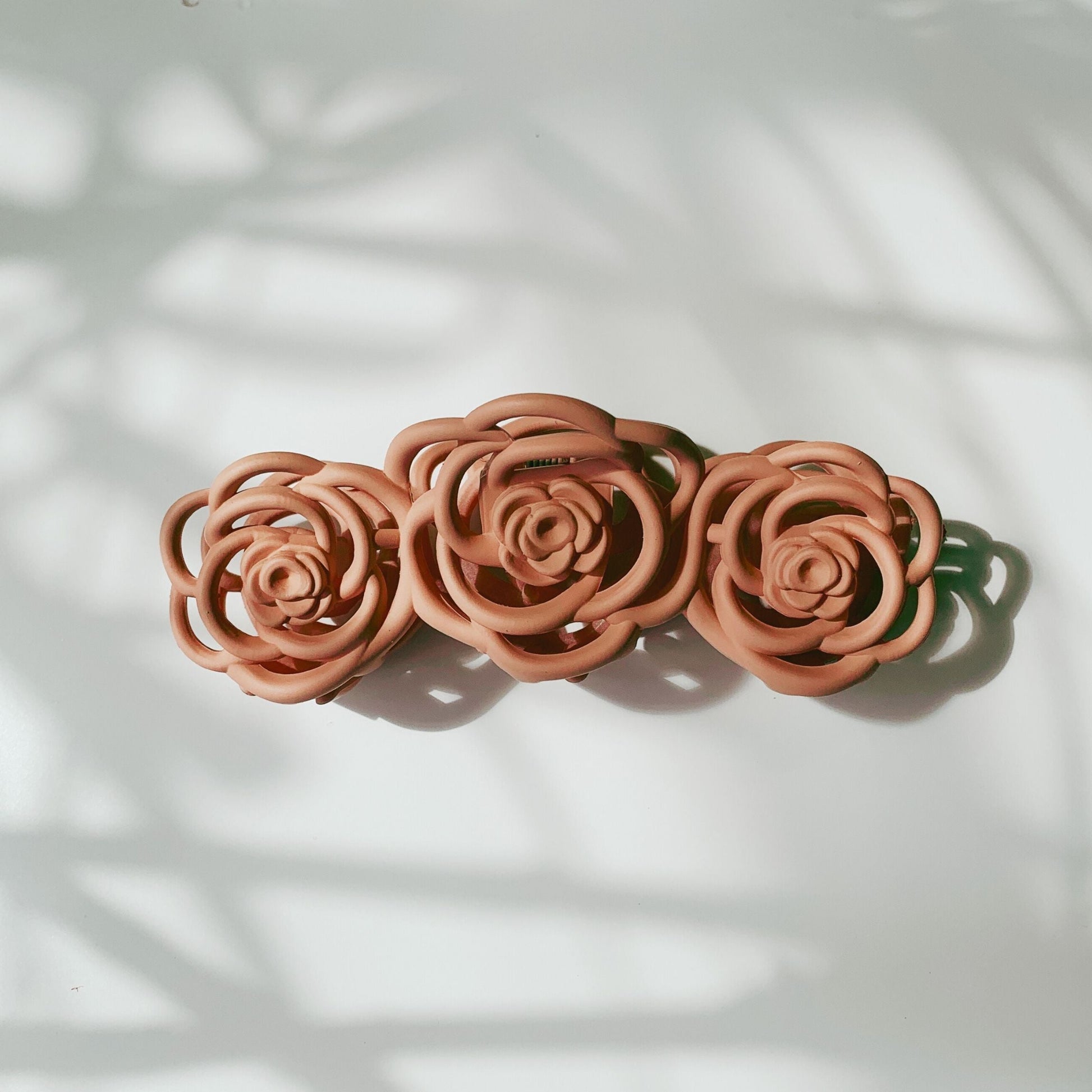 This claw clip features three beautiful mauve roses, elevating any hairstyle and adding a touch of elegance.