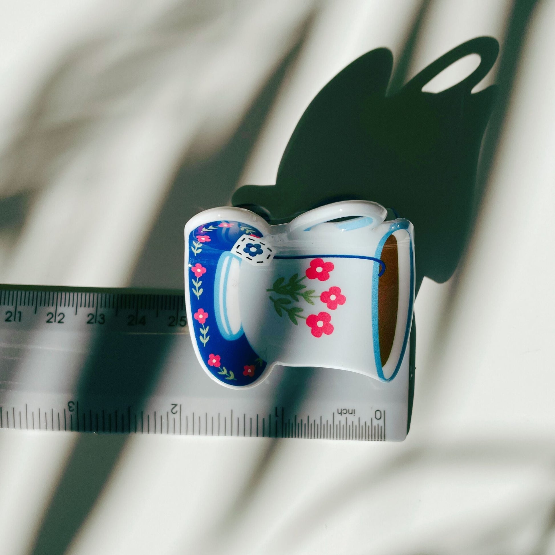 Velvet Claws Mini Blue Tea Cup with Pink Flowers Hair Claw | Claw Clip