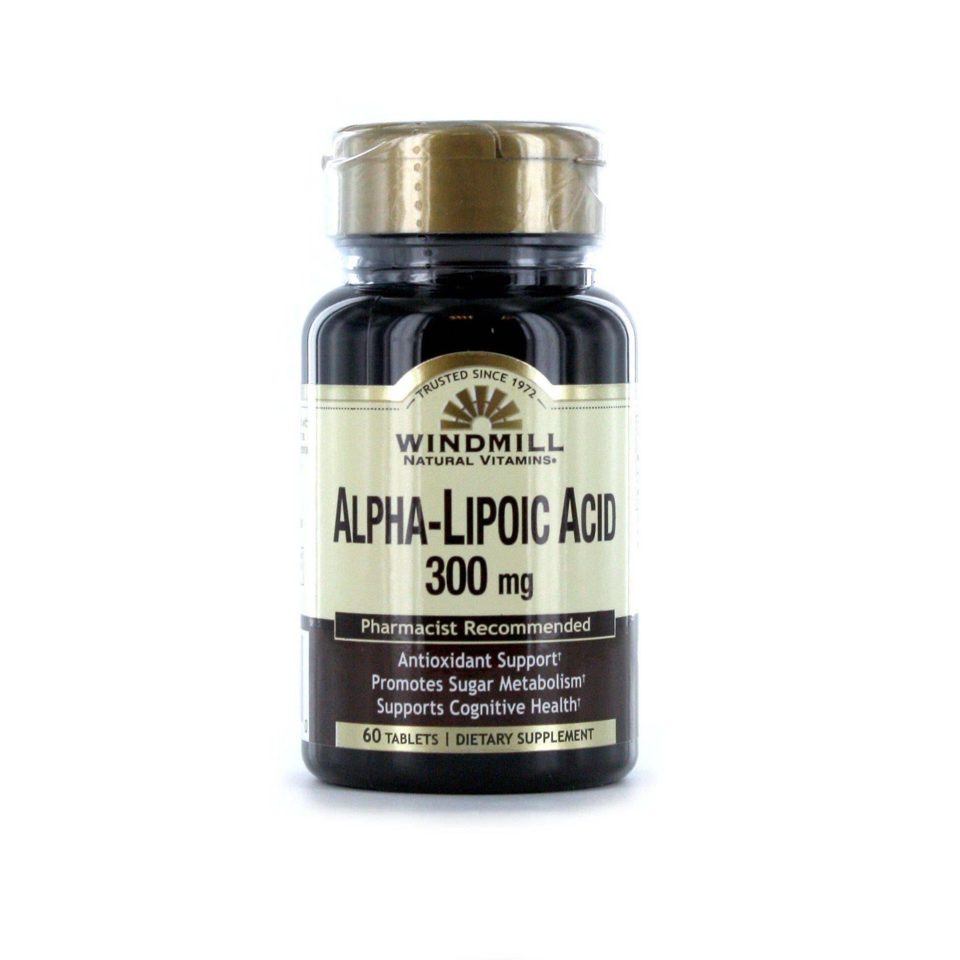 Alpha-Lipoic Acid provides 300mg per tablet. Alpha-Lipoic acid has antioxidant properties that help neutralize free radicals in the body. All Windmill supplements are manufactured in the United States in an FDA-inspected facility whose cGMP (current Good Manufacturing Practice) are independently verified by qualified certification organizations. Free of artificial colors flavors and preservatives Windmill is a trusted name that has been providing America with quality supplements for over 45 years.