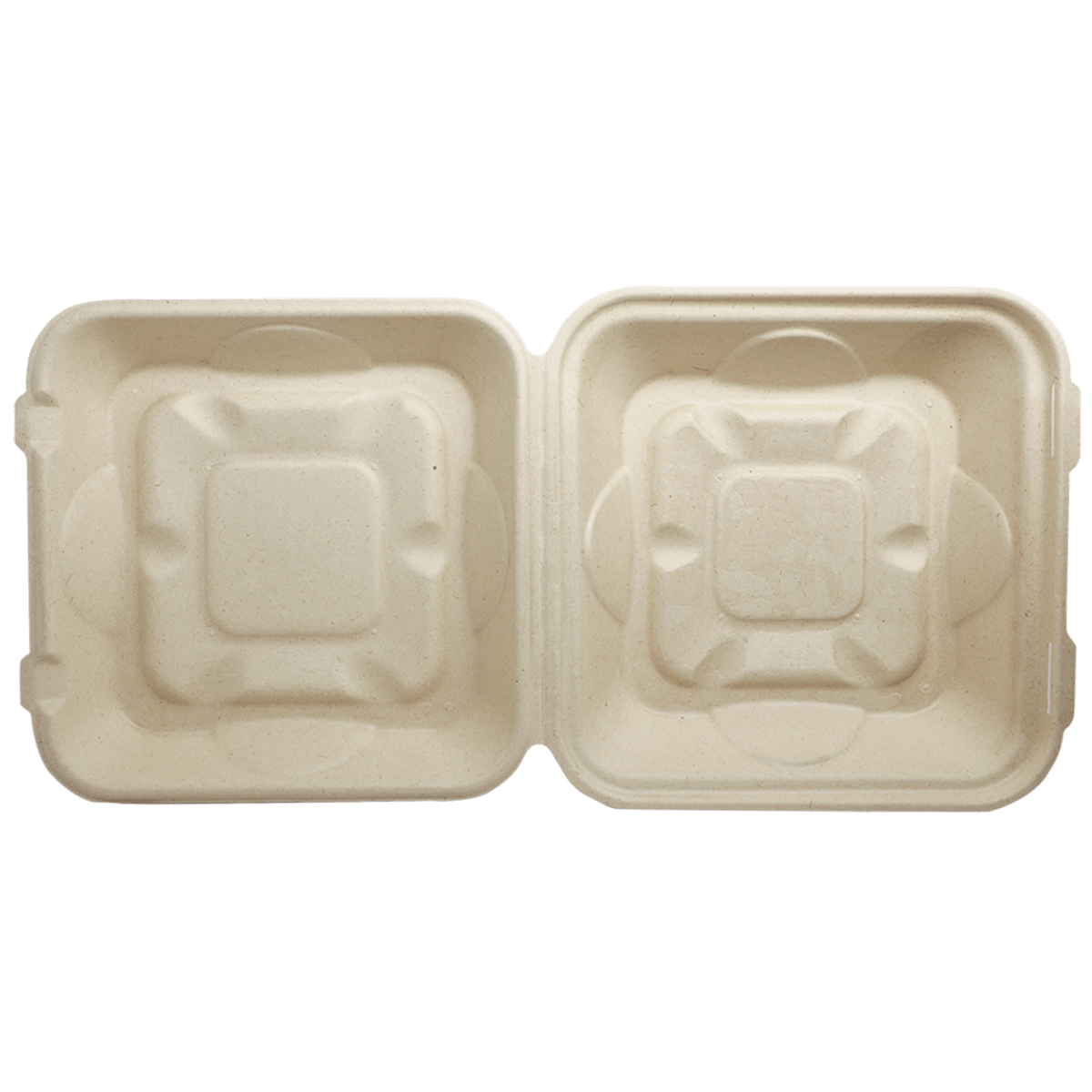 World Centric® 9x9x3" fiber clamshells are made from bamboo and unbleached plant fiber, an annually renewable resource, have a bio-based lining and contain no added PFAS. These takeout containers are compostable, durable, grease and moisture resistant, freezer safe, and contain no wax or plastic lining. Great for takeout restaurants, cafes, and food trucks. They are certified compostable in a commercial facility, which may not exist in your area.