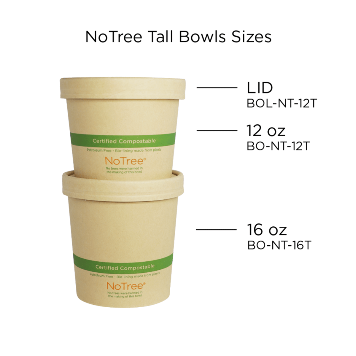 World Centric NoTree® paper lids are designed to fit 12–16 oz tall NoTree fiber bowls, providing a secure and sustainable solution for takeout, grab-and-go meals, and leftovers. Made from FSC®-certified bamboo paper with a plant-based bio-lining, these lids support a reduced-tree, renewable material approach.
