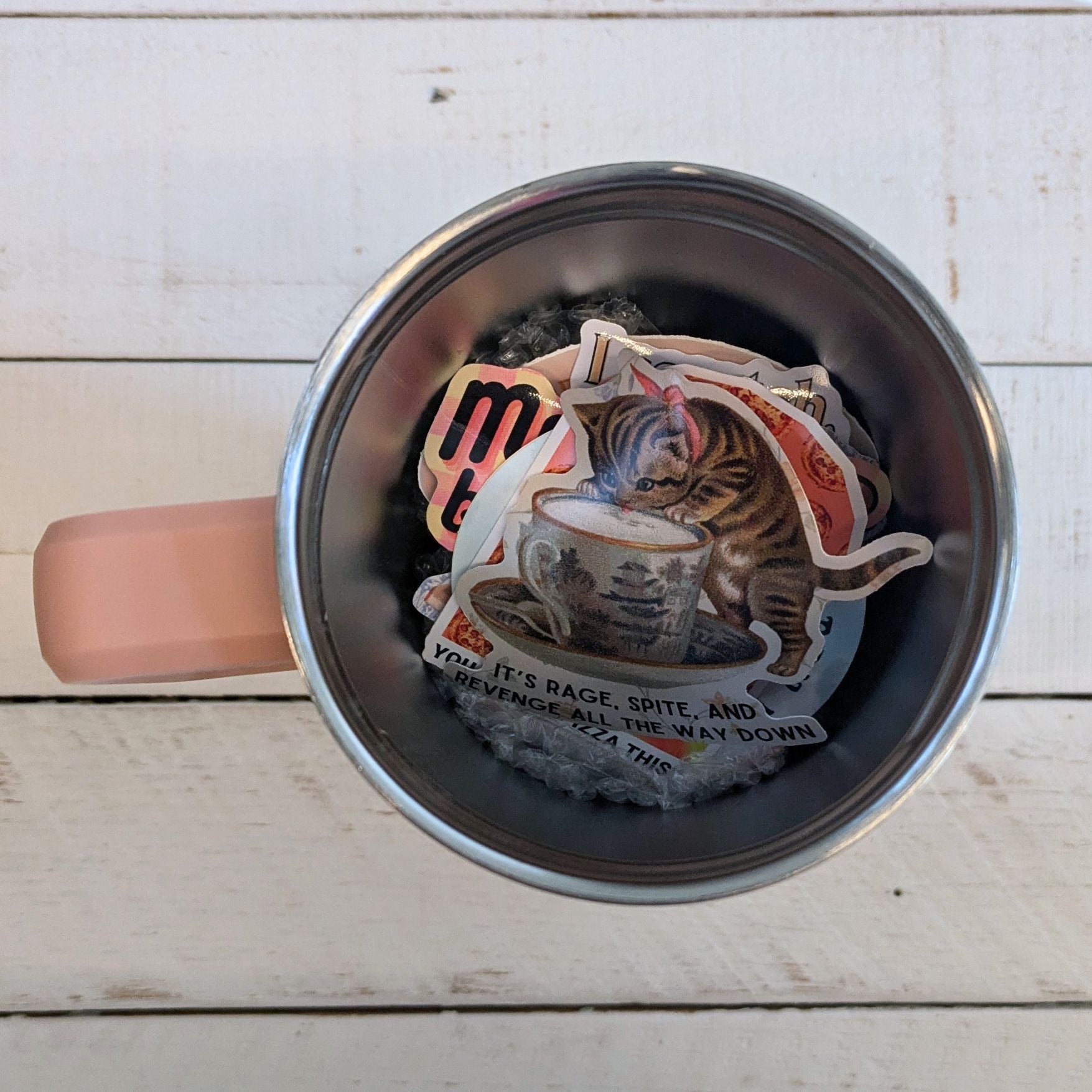 The stickers come individually placed inside the tumbler – you peel and stick! Your tumbler travel mug will be truly one of a kind.